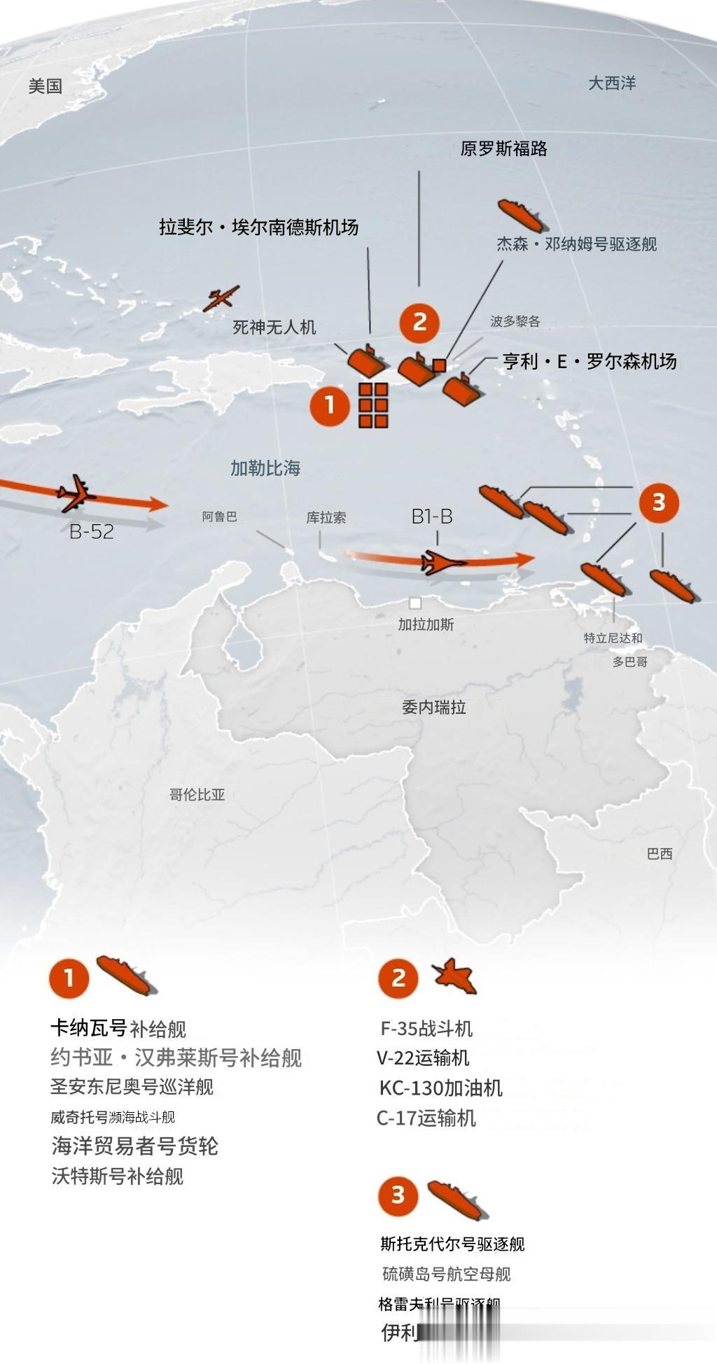 美国媒体绘制目前围绕委内瑞拉周围的兵力和军事行动