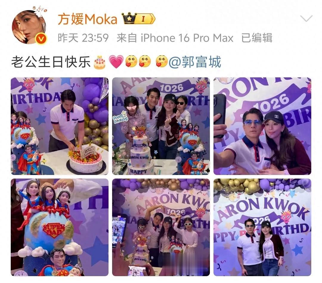 在方媛生了三胎之后的第五天,郭富城迎来了60岁生日,方媛赶在了最后一分钟发文给老公庆生,文案简单温馨。