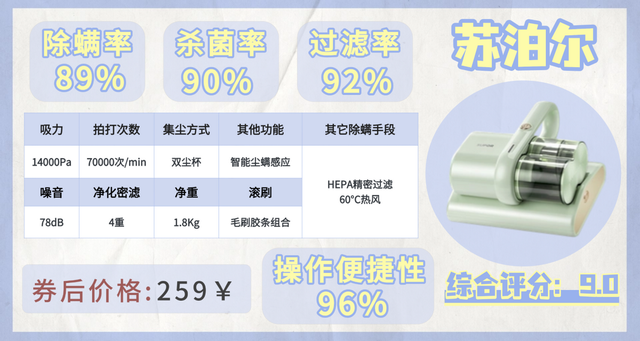 广东省人民医院皮肤科主任提过,选对除螨仪能让家庭晨起鼻炎发作概率降低70%。但市场上产品鱼龙混杂,50%存在参数虚标,大家一定要认准“吸力≥13kPa、拍打≥1万次/分钟、带热风+UV杀菌”这几个硬指标。下面分价位和场景推荐,都是经过权威检测的靠谱款: