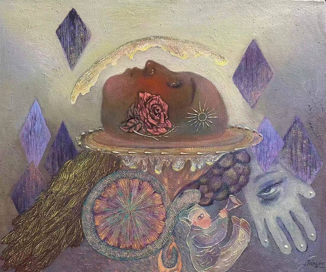 蒋欣蕾,1989年生,2012年毕业于鲁迅美术学院综合绘画系,获学士学位。后为鲁迅美术学院综合绘画系研究生,2016年获硕士学位。 现为高校教师,辽宁省青年美术家协会会员,从事艺术创作至今。
