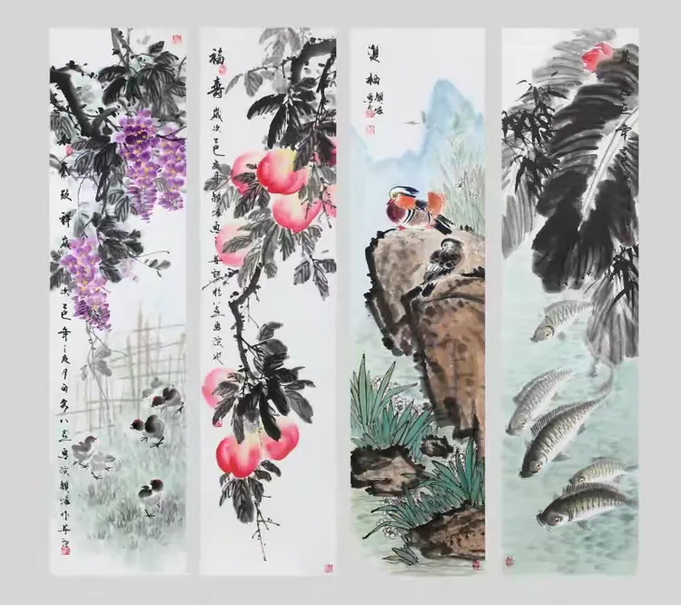 花鸟四屏
