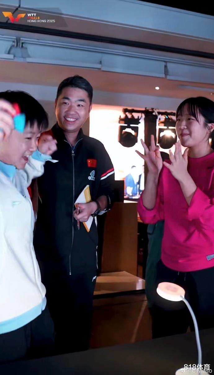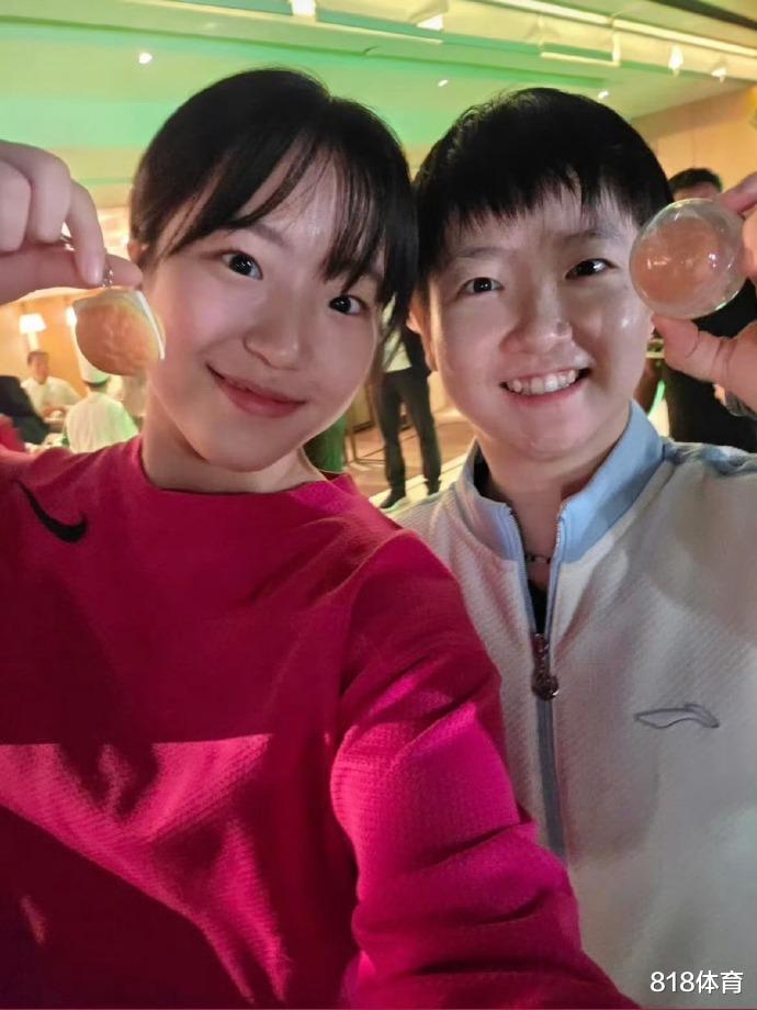 2025年10月女团决赛前,申裕斌轻拍孙颖莎肚子缓解紧张,被球迷称为“名场面”。赛后她主动晒出与孙颖莎、王曼昱、蒯曼的四人合影,收获超11万点赞。