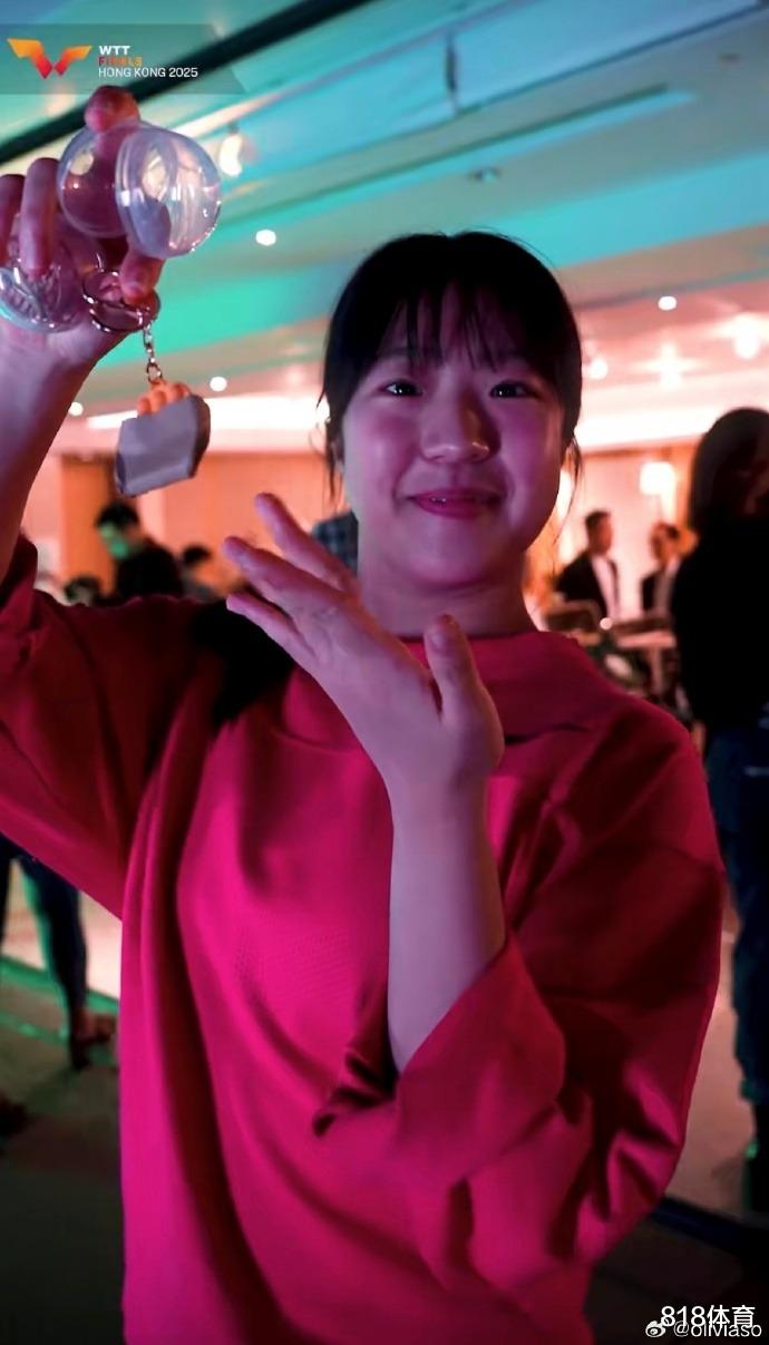 12月9日,WTT官方社媒晒出了孙颖莎和申裕斌在香港逛街购物的休闲时刻,孙颖莎也展示出她买的菠萝包小挂件。