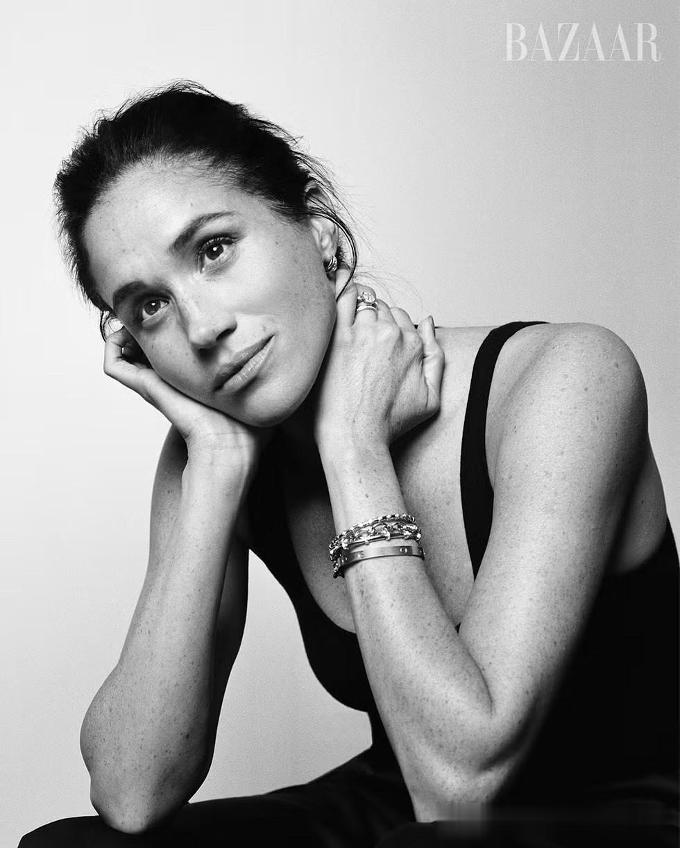 大概也如她所说的,因此梅根这次的封面照也展现了她真实的一面,略黑的肤色,加上密密麻麻的雀斑,但是这样的她真的很适合这样的大片风格,还挺让人觉得惊艳的。