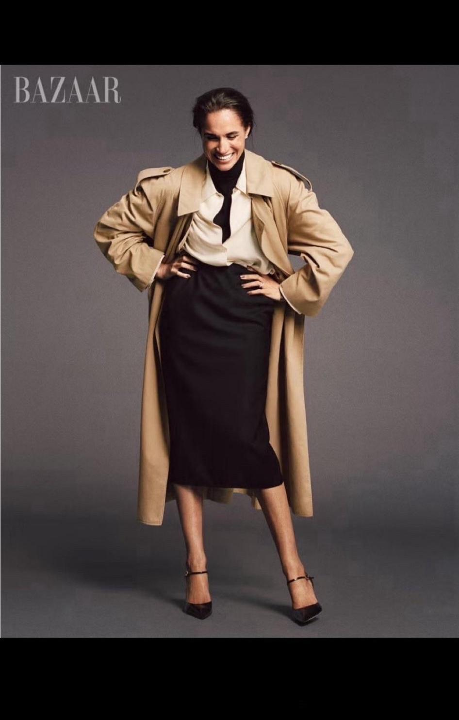 梅根自从离开王室后,就一直致力于打造自己成功女企业家的形象,这次难得登上时尚芭莎大刊,自然也是不会错过这样一个好时机。穿着套装裙,披着驼色长风衣,这样的梅根还真是相当有范儿,像个时尚的职场丽人。