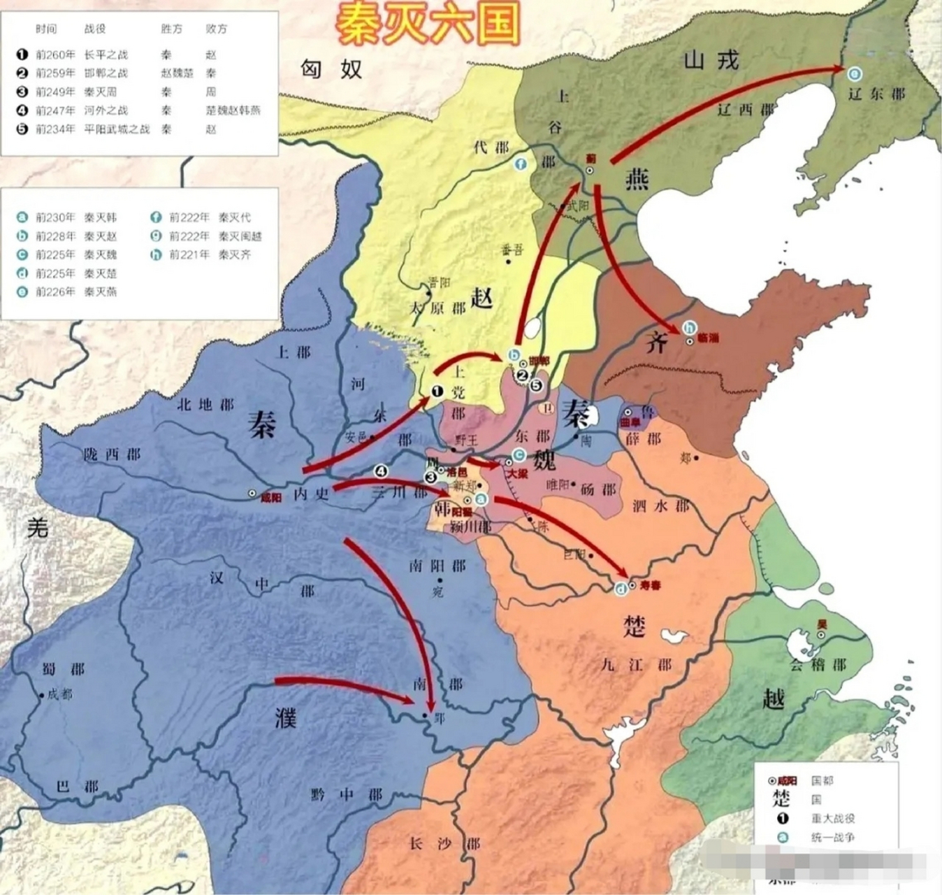 自秦王政十七年(公元前230年)灭韩,至二十六年(公元前221年)灭齐,十载之间,秦王嬴政率秦军横扫六合,次第翦灭韩、赵、燕、魏、楚、齐六国,结束春秋战国数百载分裂割据之局,建华夏首个统一多民族中央集权国家——秦朝。秦并六国之役,非独军事之征服,实乃战略与智慧之角逐。其“远交近攻”之策,精准利用六国间隙,分化瓦解敌盟;王翦、王贲诸名将之善导,为战事胜利提供保障。此统一之举,顺历史之潮流,止长期之战乱,利社会之安定与发展,亦为后世两千余载封建制度奠定根基,对华夏历史演进影响深远。