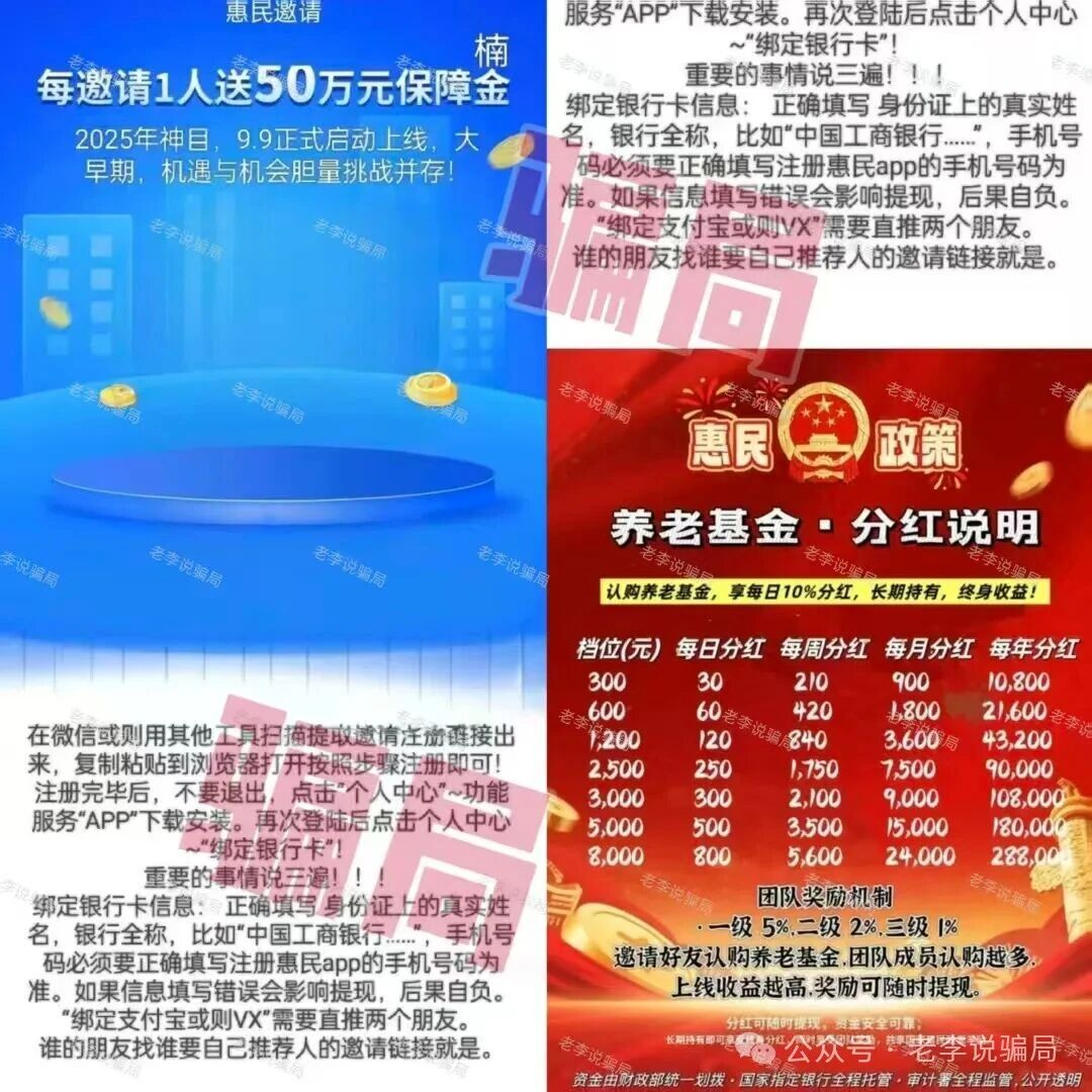 冒充国家机关推出所谓的“养老基金”,日分红高达10%!远远超出正常基金投资水平。下载提示未备案,IP地址显示在大陆境外。
