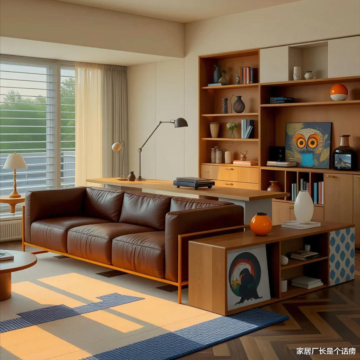 当你把沙发从墙边“解放”出来,客厅瞬间多出了一条流畅的行走通道,视觉上打破了传统的“沙发靠墙+茶几+电视墙”三点一线的僵硬格局,让客厅不再是一个“被堵死”的方块,而是有了流动感。