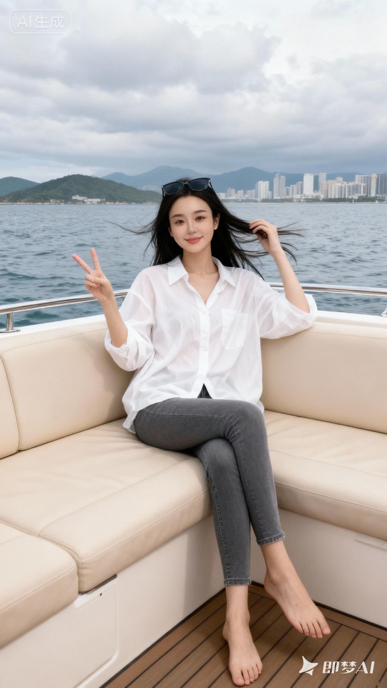日常快照风格,非精心构图或打光,黑色长直发,冷白皮,拥有腹肌马甲线,穿搭时尚,肩