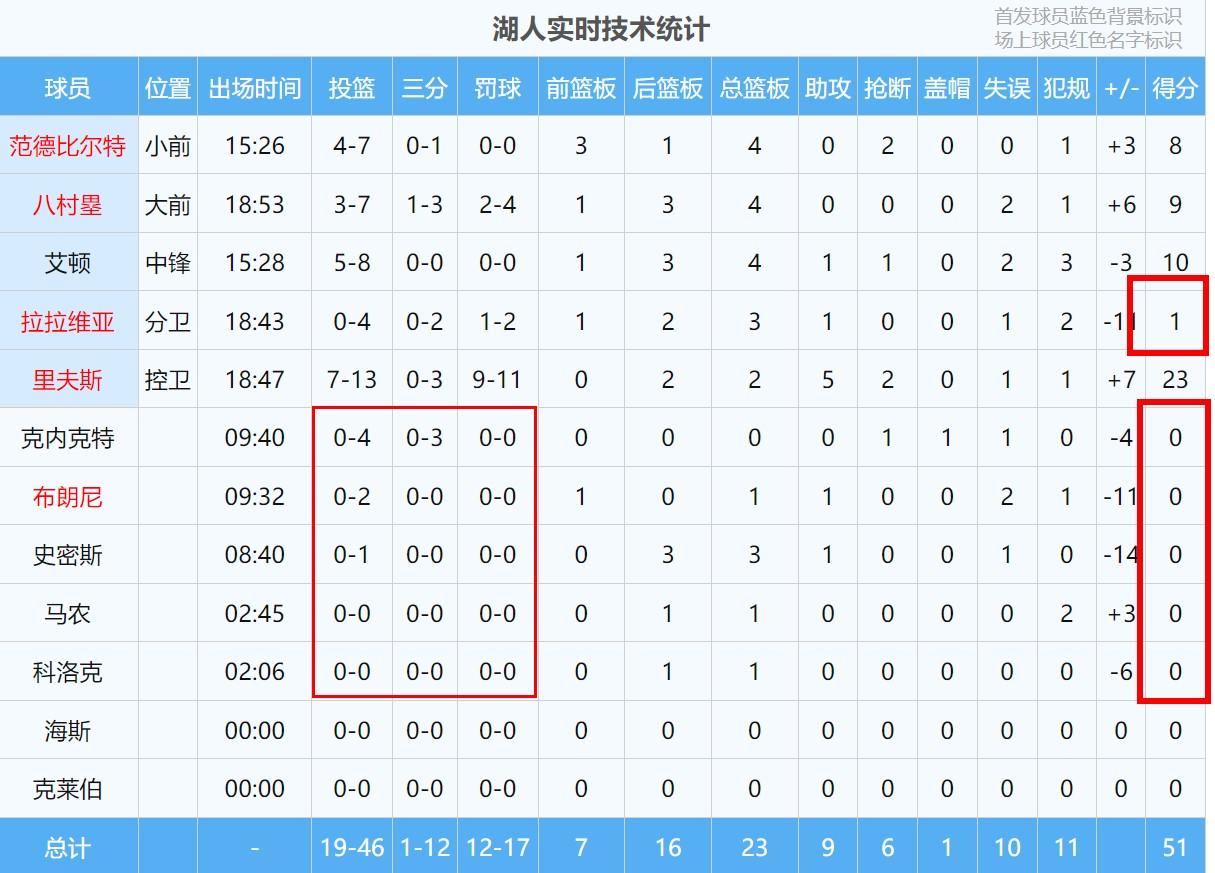 湖人队这阵容太扯淡了! 对阵开拓者的上半场,湖人替补席得分:0分!首发拉拉维亚