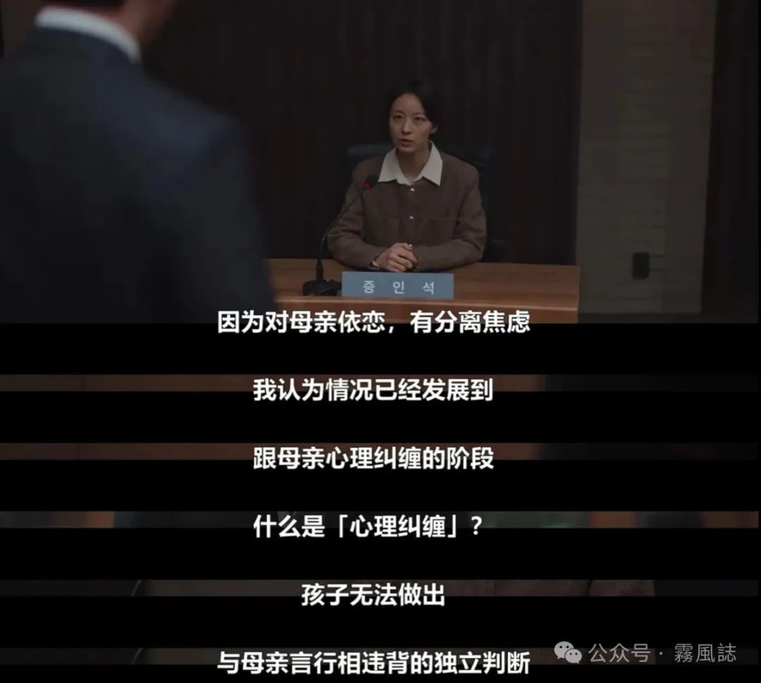 在法庭上,男主言辞过于激烈、尖锐中伤对方,妈妈在法庭上崩溃大哭,但是不少观众认为“必须要有人告诉她、才能改正”。