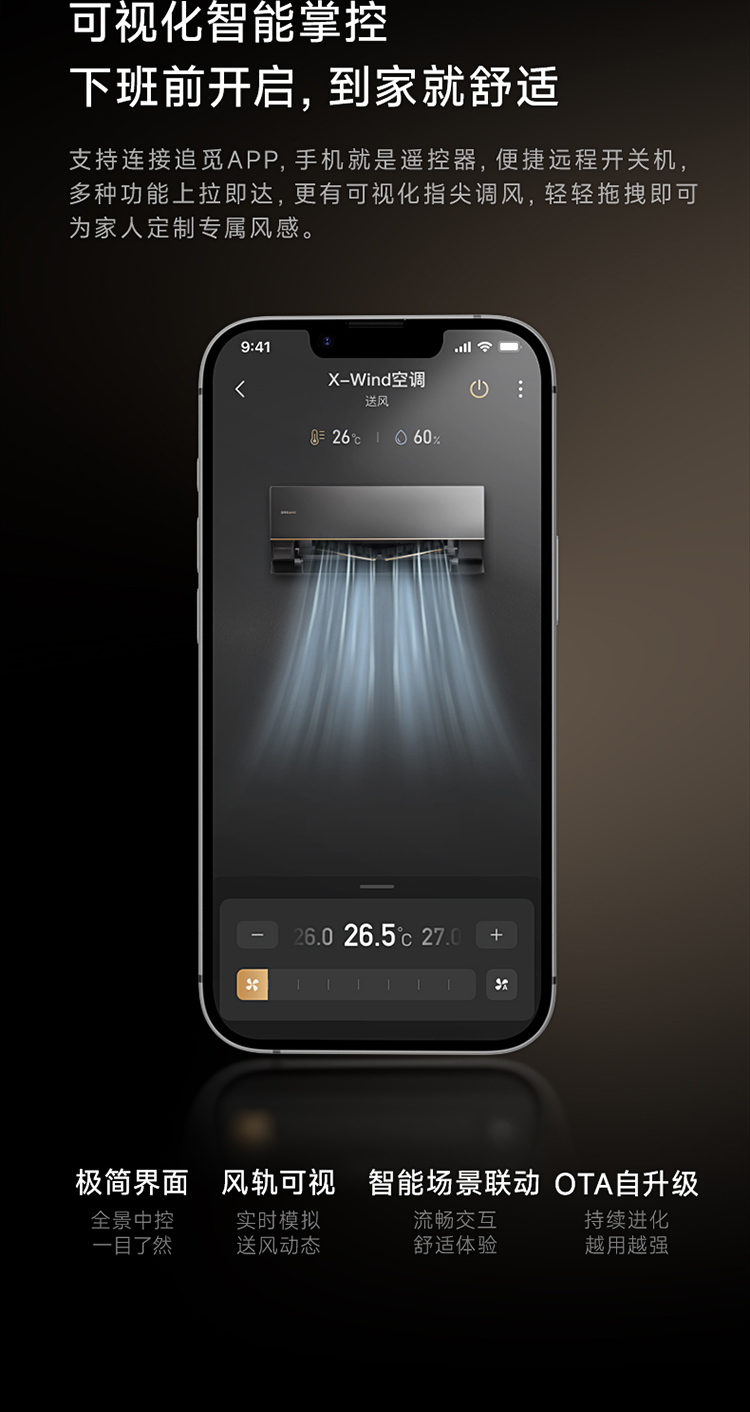 追觅机械臂空调的APP可视化滑控,简直就是给 “懒癌患者” 最贴近的设计。上班路上在地铁里,就能打开手机APP提前开启空调,还能精准设置温度。比如夏天设26℃,冬天设22℃,到家推开门,就能立马享受到舒服的温度,不用再等降温或升温。