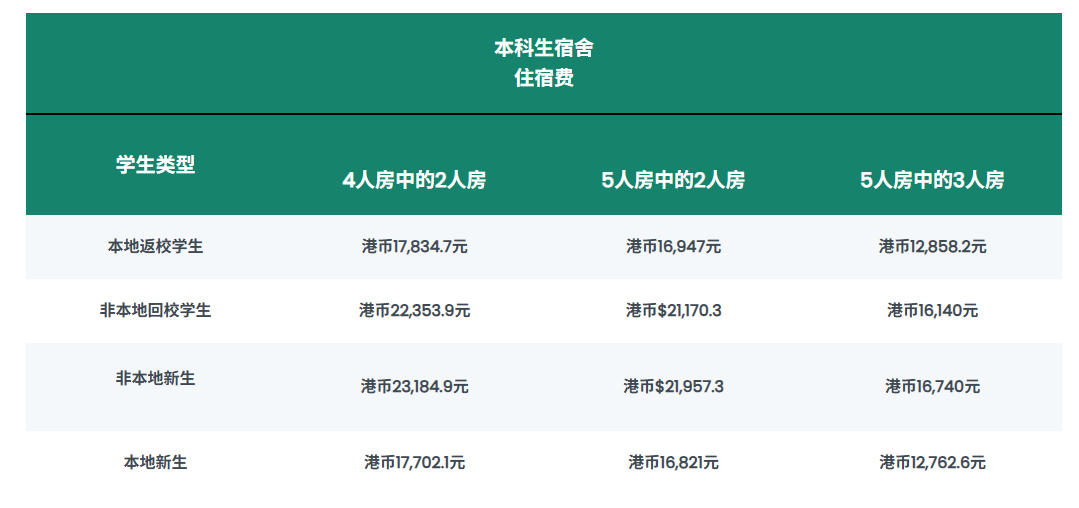 有关学生舍堂宿费及住宿政策的详情,请参阅大学学生事务处网页。