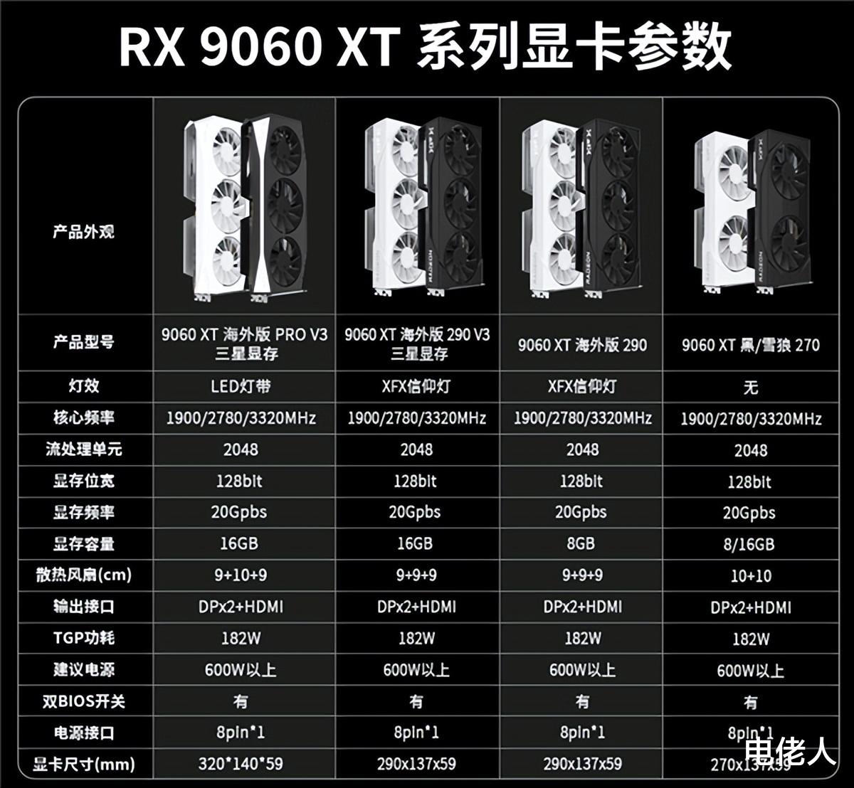 近期,知名显卡品牌讯景宣布,旗下RX 9060 XT V3系列显卡全面升级,显存由原来的SK海力士GDDR6更换为三星G