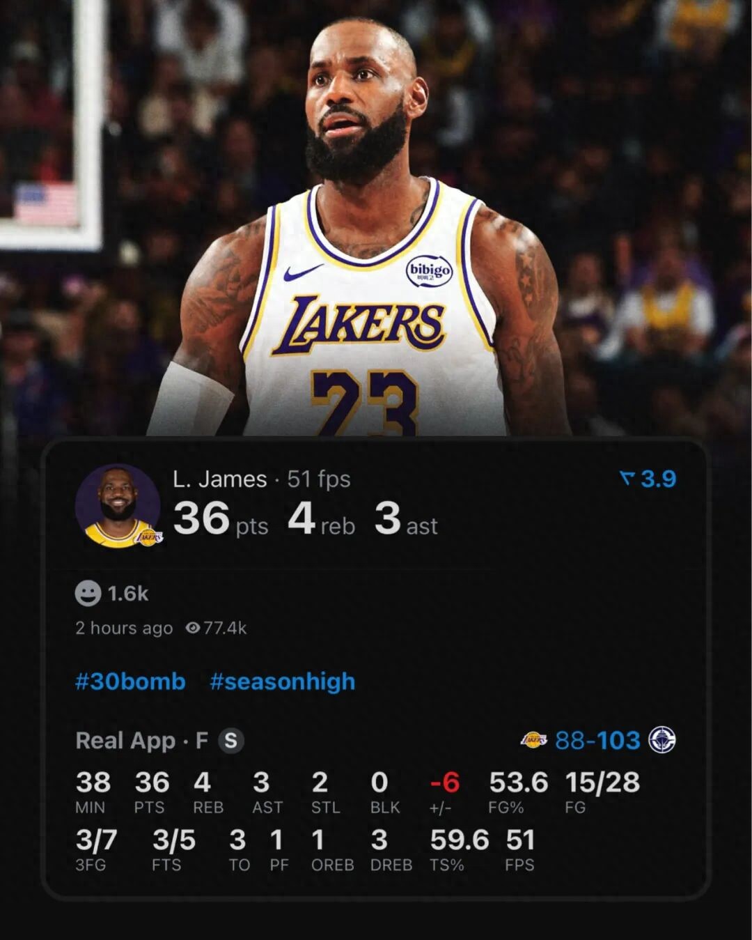 但是詹姆斯这场拿下了36分4篮板3助攻!