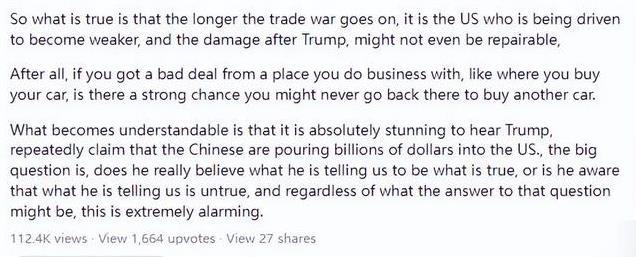 近日,有一位美国网友在Quora上发帖质疑特朗普关于中国将会随之崩溃的说法。