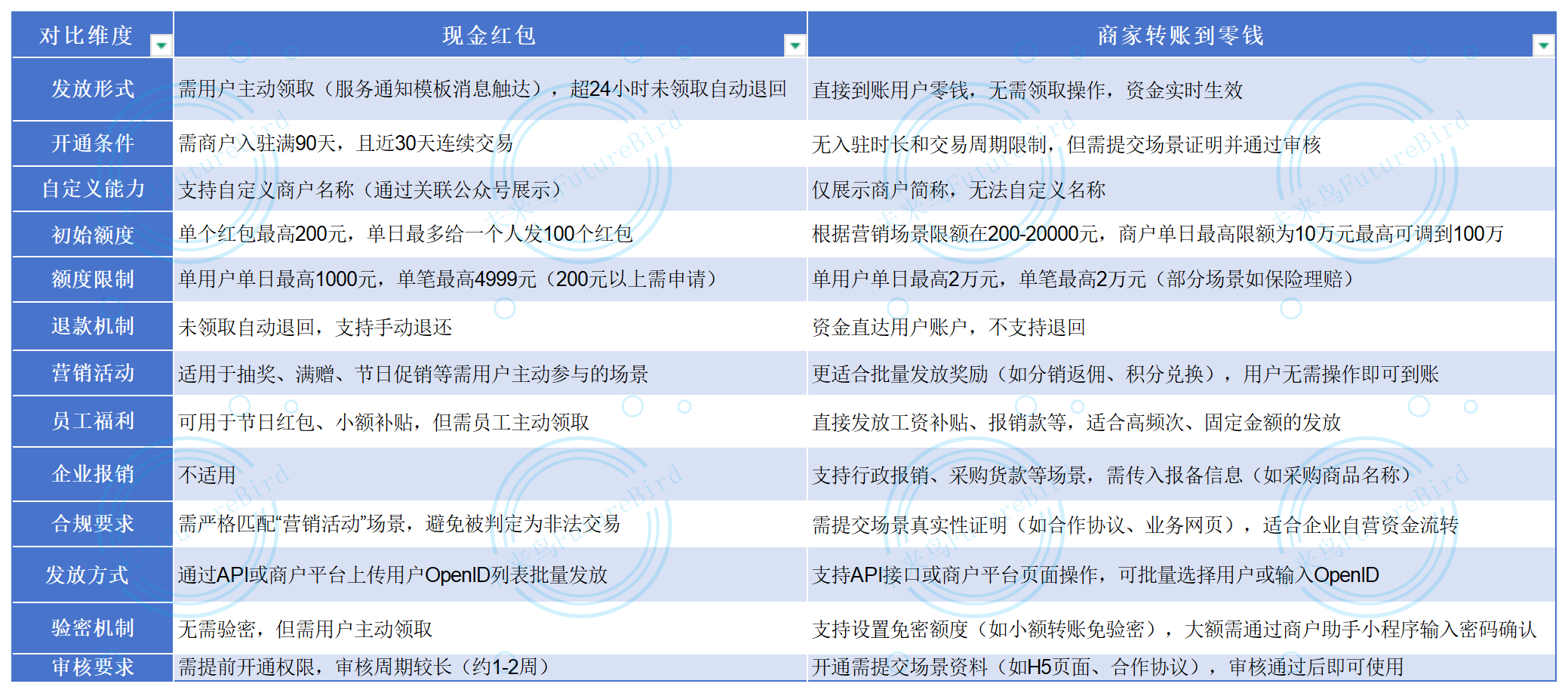 合规要求:商家转账需场景报备与资金用途说明,红包无强制合规流程