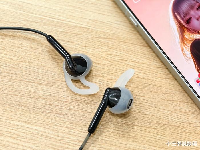 线材方面采用铜质内芯,拥有PVC绝缘和防干扰层,传导性能更强,能够有效过滤干扰信号,大幅降低电流音。右侧耳机线上设置有线控,三颗按键分别为音量+、通话和音量-。