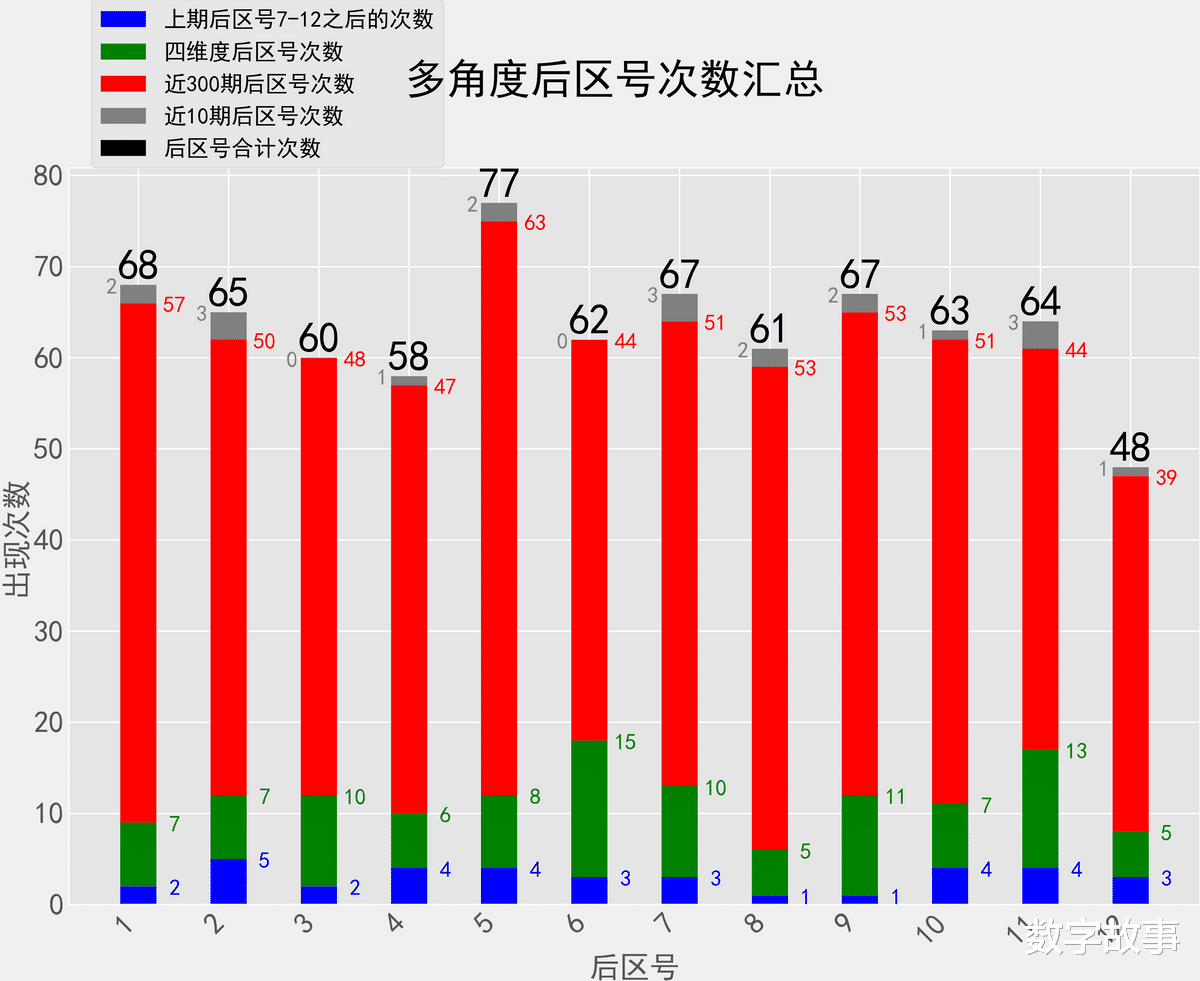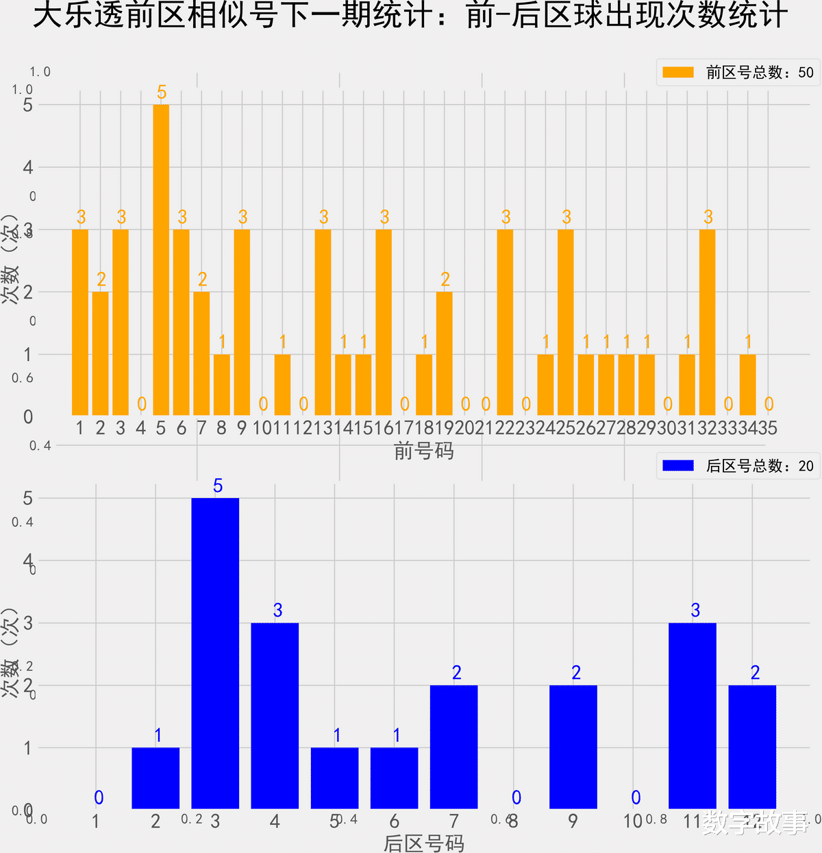 大乐透近10期前后区号统计情况统计样本数据: 50个前区号码 20个后区号码