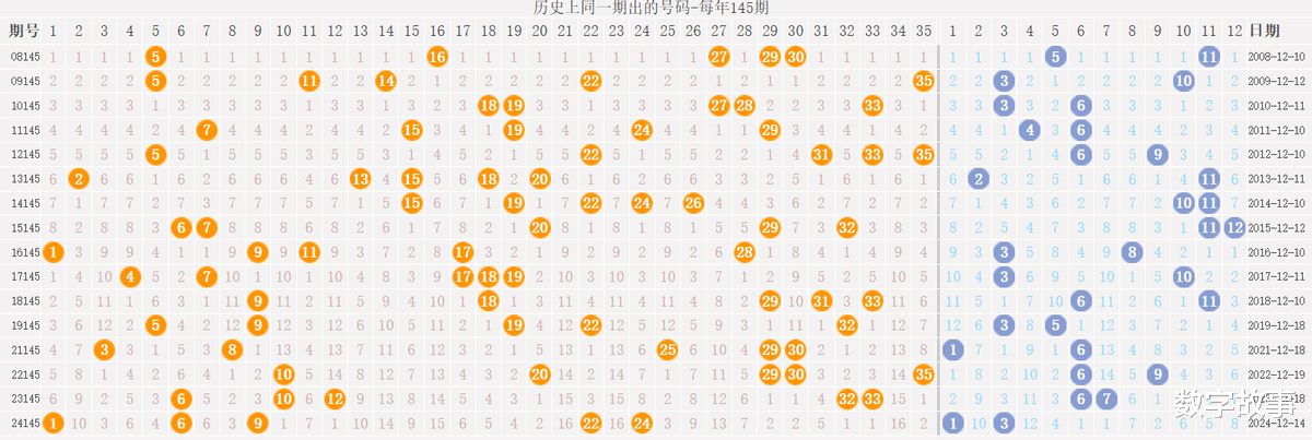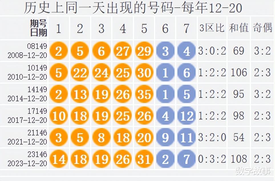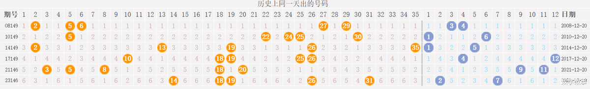 博弈心理,挑战概率: 看近期开奖号码,也可看历史数据统计!【大乐透25145期多角度冷热号】大乐透25145期四维走势图,前后区号统计及冷热号1) 历史同一天:12月20日 (共6期)