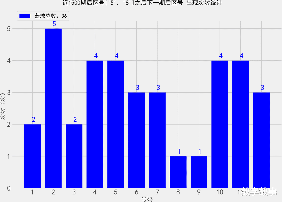统计近1500期后区号5-8之后, 各后区号的出现次数大乐透25144期后区号是5-8找出近1500期后区5-8号之后,下一期出现的所有后区号,统计其出现次数。除开这一期,共出现了18次5-8后区号那么统计的样本数据是36个