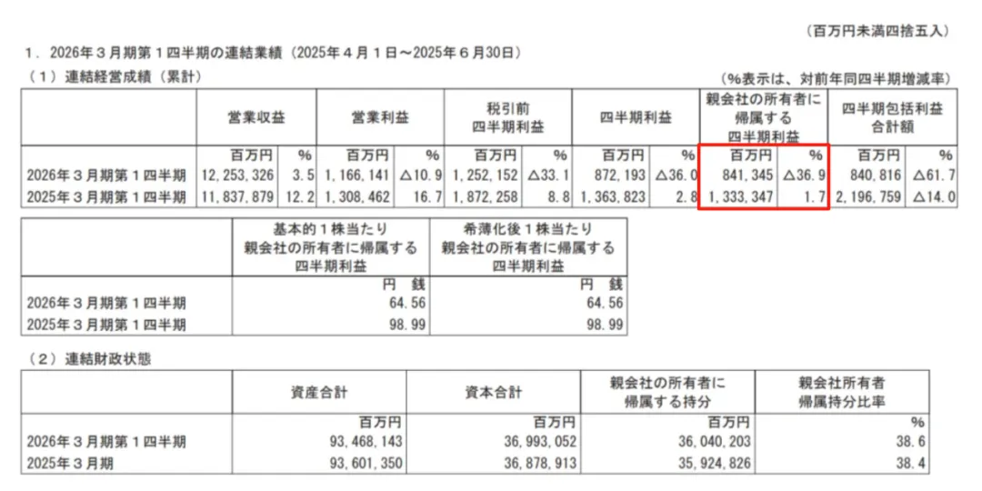 从财务数据来看,丰田当前的利润走势也不容乐观。今年4月-6月,丰田的净利润为8413亿日元,同比大幅下降37%。