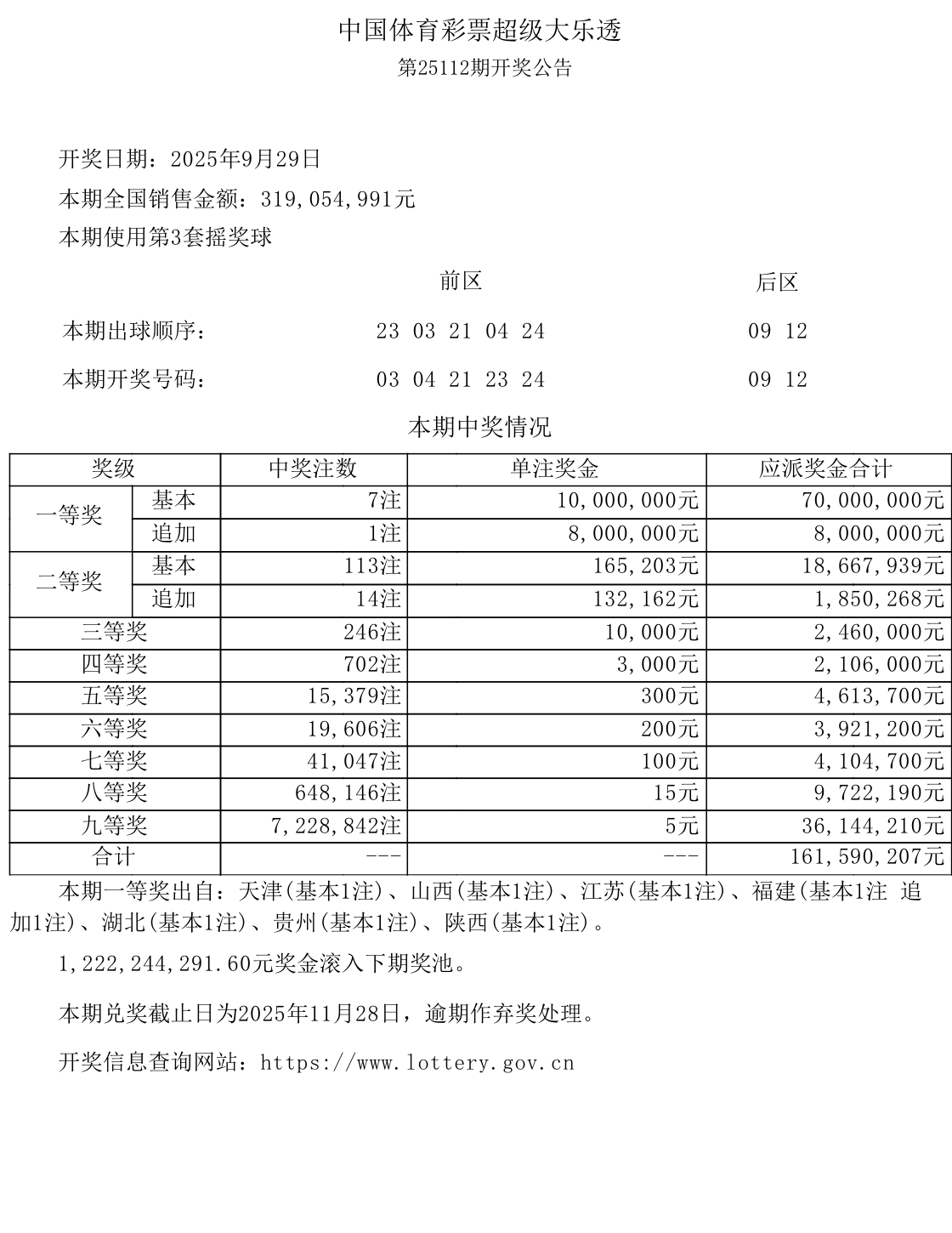体彩超级大乐透2️⃣0️⃣2️⃣5️⃣112期开奖结果