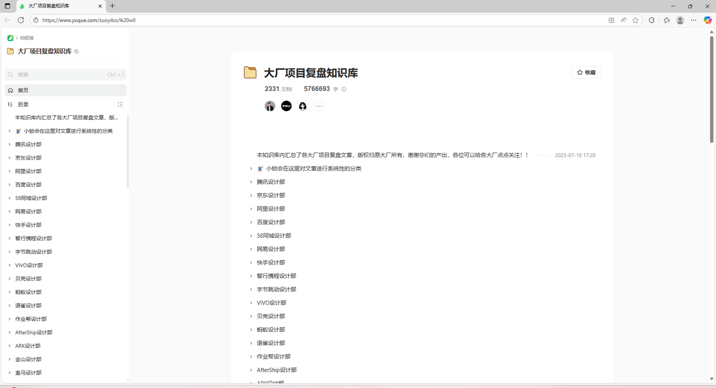 4、大厂项目复盘知识库这是一个收录了各大互联网公司真实项目复盘的知识库,里面汇总了阿里、腾讯、字节跳动、京东等互联网巨头的2200多篇实操经验,共计560多万字,涵盖产品、设计、运营、技术和数据分析等全领域干货。