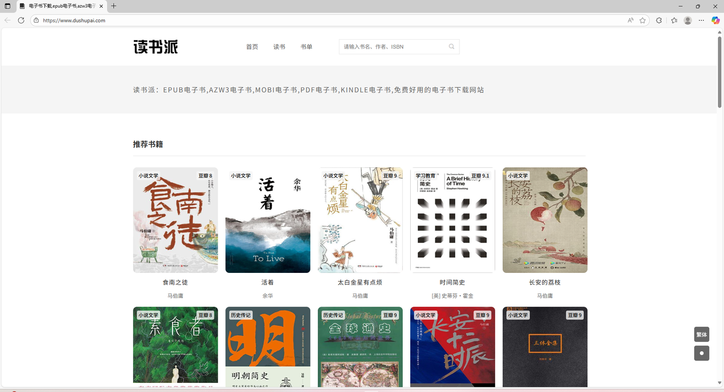 9、读书派这是一个完全免费的电子书下载网站,能帮你一键找到市面上最新最火的电子书资源,不用注册,不用付费,打开就能下载,超级省心。不管是热门小说历史传记还是经济管理,人文社科全都能在这里快速找到提供多种下载格式,直接适配你的kindle手机和平板。最贴心的是,它的更新非常及时。