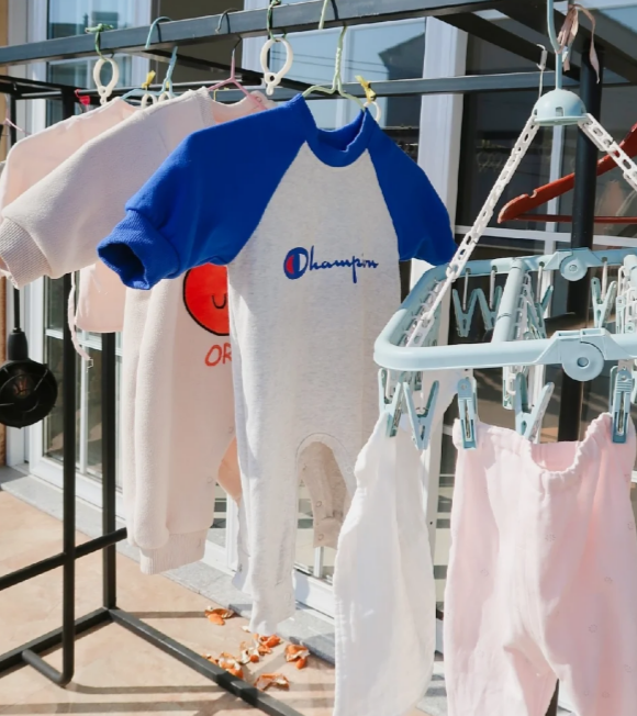 毛巾卷压法:宝宝的小衣服用干毛巾卷起,轻轻挤压,干得快又不伤衣物。阳光消毒:选上午十点到下午两点,把衣服翻面晾晒,紫外线杀菌又护色。