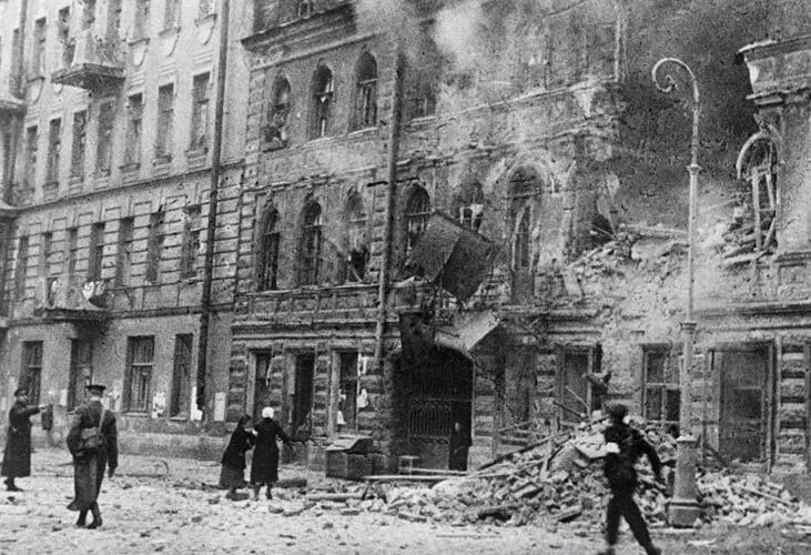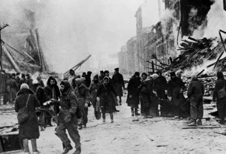 上图_ 1942年1月,被德军空袭过的列宁格勒城