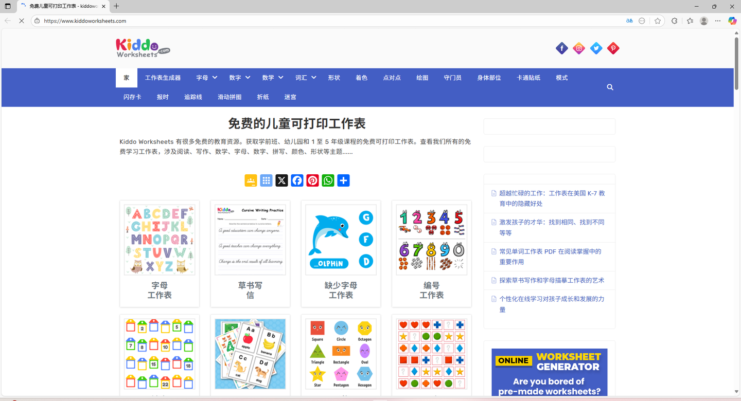 4、Kiddo Worksheets这是一个可以免费生成各种作业纸的网站。无论你需要的是英语练习、数学题目、词汇背诵、图形几何还是折纸图案,这里通通都有,并且每一张作业纸设计的都非常精致,画风清新,让人看着就有做题的欲望。