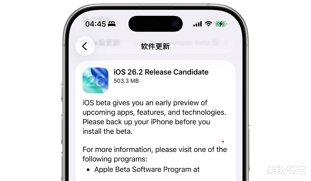 昨天据开发者消息表示,苹果预计会在 12 月 9日凌晨正式推送 iOS 26.2 正式版更新,很多用户都等到凌晨4、5点要更新正式版,没想到苹果更新越没有规律了,今天凌晨更新的是iOS26.2RC2版本,如果想直接用上 iOS 26.2 正式版,可以跳过 RC 版,等待正式版系统发布即可,通常来说,苹果发布 RC 2 版系统的情况相对罕见。