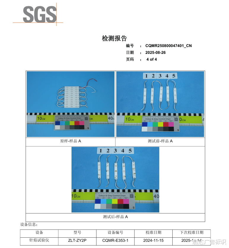 选材上,坚持选用 IP65 以上防水、阻燃性能达标的 LED 模组,电源线径严格按功率匹配,从源头杜绝质量隐患;