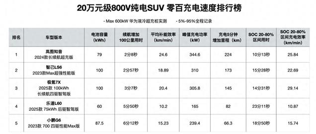 12月12日,某汽车媒体在社交平台发布的“20万级800V纯电SUV零百充电速度排行榜”引起不少网友关注和评论,此榜单直观展现了2024年纯电SUV赛道各位选手的充电情况。充电快慢作为消费者购车的重要衡量因素之一,这个榜单一目了然。