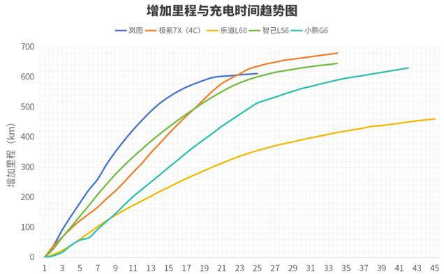 据悉,此次测试中,媒体在保持车辆同一状态下,使用同一充电桩进行单车充电测试。岚图知音最早完成充电,用时24分58秒;其次,极氪7X和智己LS6几乎同时完成补能,用时分别为33分58秒和33分59秒;然后是小鹏G6,用时41分33秒;最后是乐道L60,用时44分53秒。