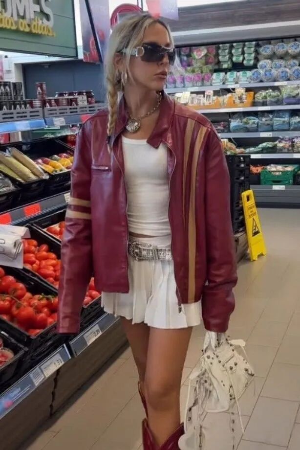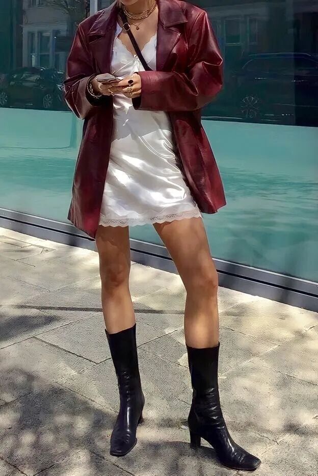 白色的干净又像给红色皮衣铺了层清爽底色,