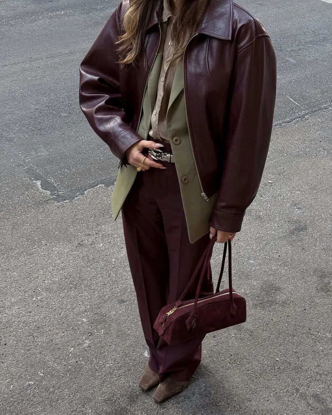 暗红色的沉稳与苔藓绿的温润撞在一起,