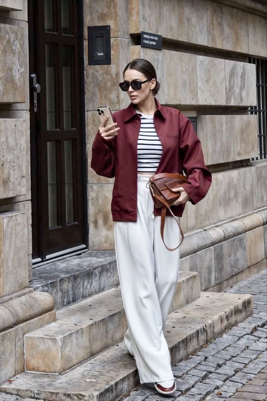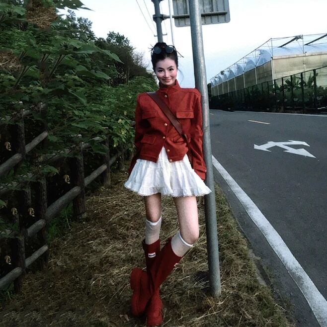 “短夹克 + 高腰线” 的组合瞬间优化比例,