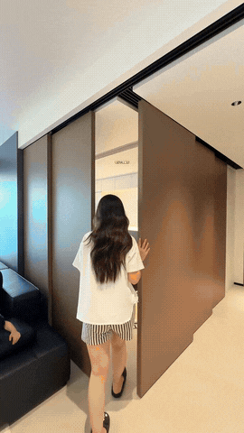 这种改造方案对于客厅面积偏小,次卧又和客厅相邻的户型特别适用,直接拆除隔墙实现客厅空间的扩容,也能用玻璃移门、折叠门或半墙做隔断,需要时能快速隔出临时客房或独立办公区,太绝了。