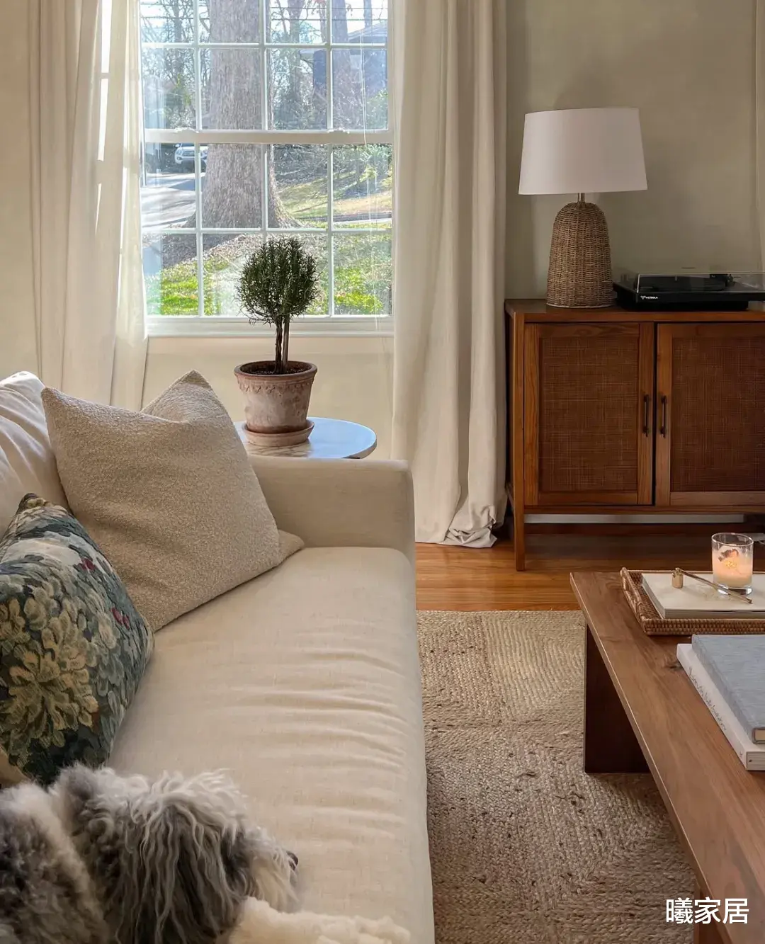 用喜欢的物品填满空荡的房间,看着它一点一点慢慢变成心中的样子,这就是装饰家的意义。这个家看起来美式但是没有老钱风,更浅的色彩以及线条简洁现代风家具,感受到主人对舒适自由的追求。坐在心爱的沙发上,享受美丽的天气,这样的场景,让女主心怀感恩。