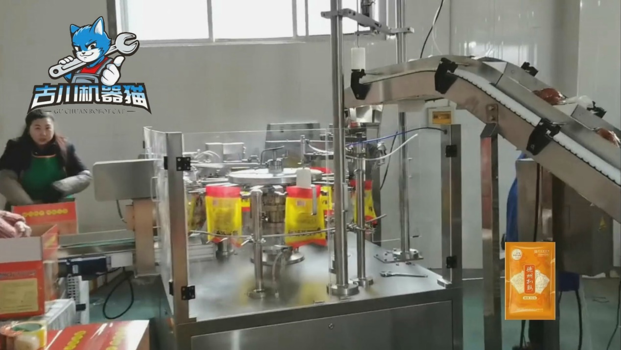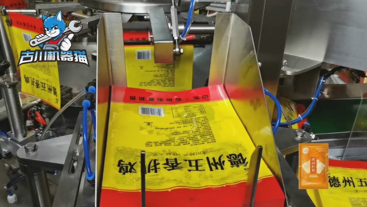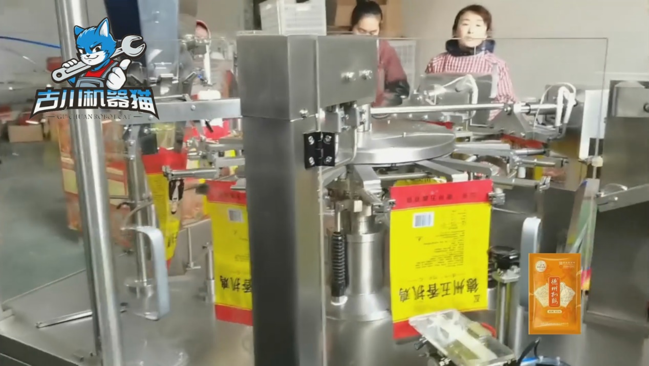古川扒鸡给袋式包装机,正是为此而生的高效解决方案。它采用先进的给袋式自动包装系统,运行速度可达35-50包/分钟,日产能轻松突破6万包,真正做到高效率与高品质的兼得。