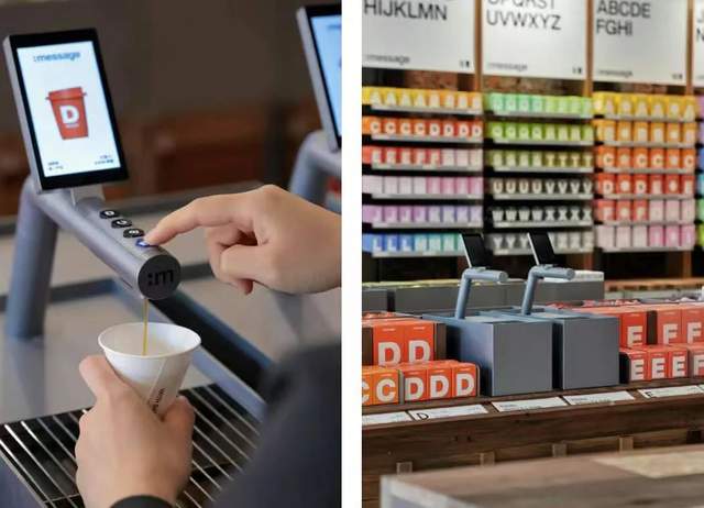 「零售氪星球」注意到,这个店里,使用了自我研发的特色试饮系统,线条简洁干净的智能龙头,外形很苹果,可以一键切换不同风味的咖啡,先尝后买,让人没有现场盲猜选豆“焦虑”,既体贴友好,也增加了线下买咖啡的互动和乐趣。