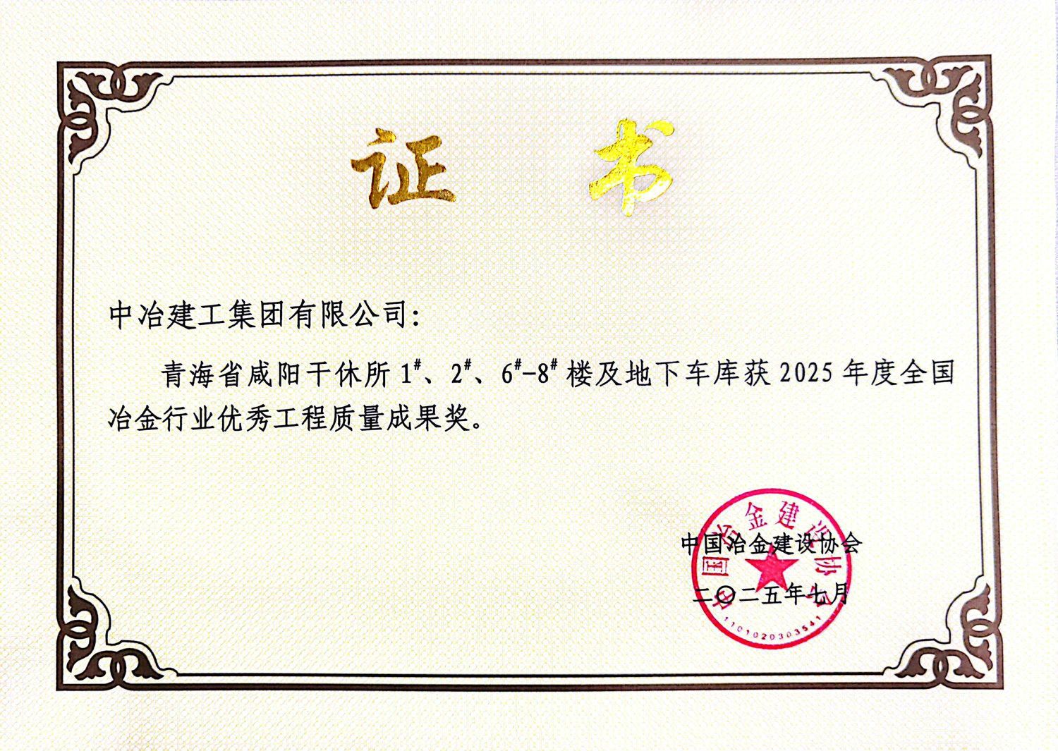 2025年8月20日,中国冶金建设协会公布“2025年度全国冶金行业优秀工程质量成果奖”名单,亿诚建设项目管理有限公司负责监理的青海省咸阳干休所项目成功入选,荣获“2025年度全国冶金行业优秀工程质量成果奖”荣誉称号!
