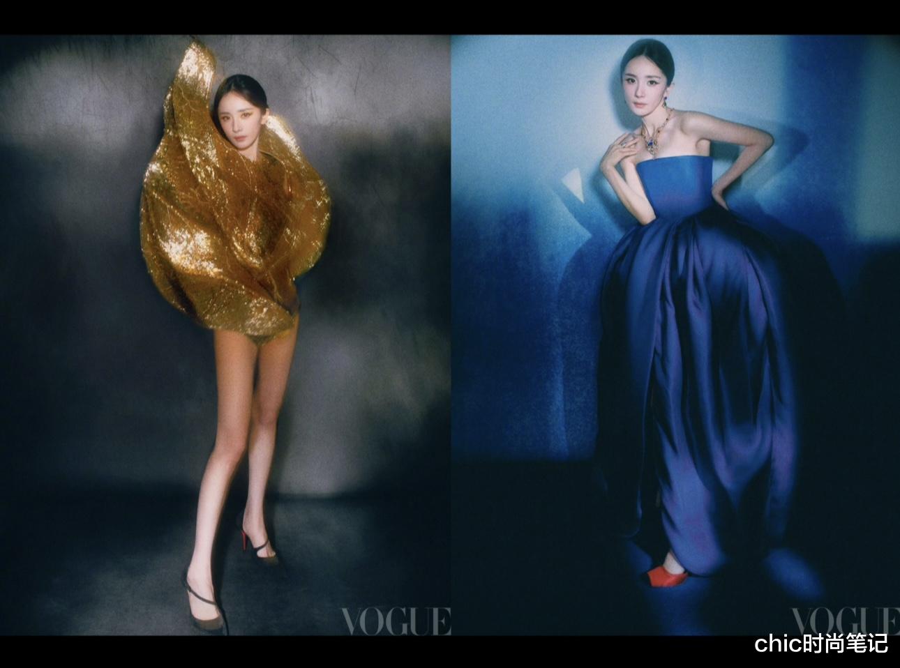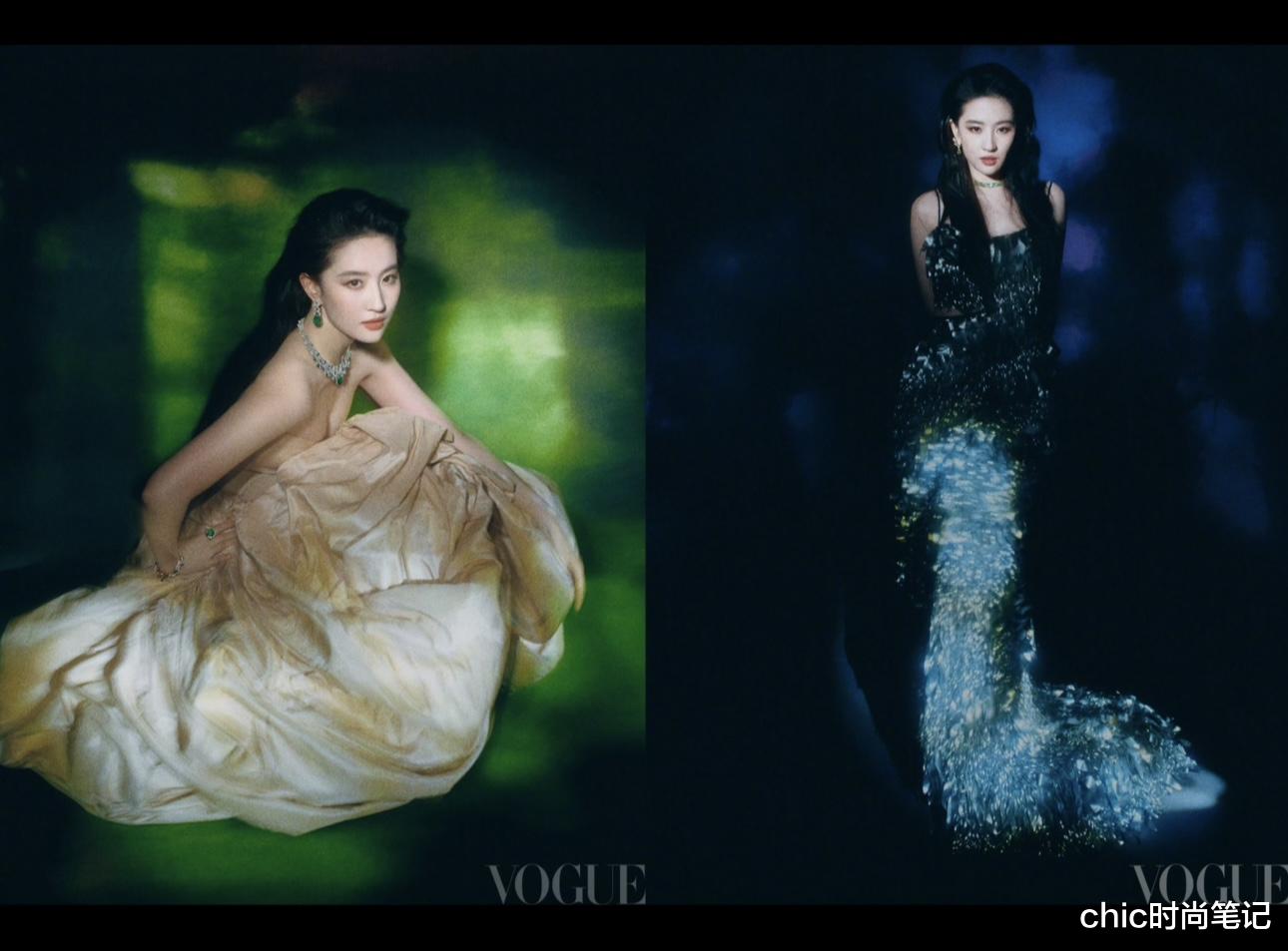 刘亦菲作为连庄VOGUE金九的女星,也是本次VOGUE群封的C位,佩戴BVLGARI高级珠宝,两套礼服均来自LV定制款,一袭黄色礼服展现鎏金优雅,一袭蓝色礼服彰显清冷气质。