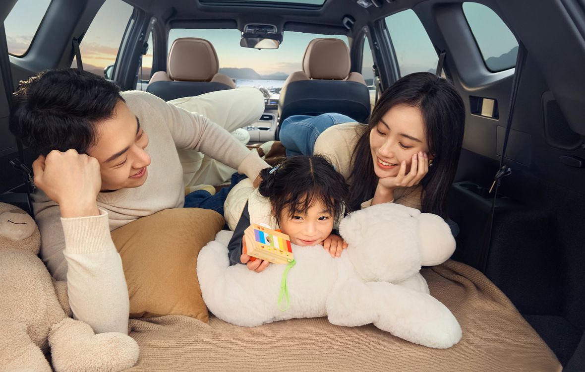 空间与舒适方面,风云T8精准匹配家庭需求。5+2座灵活布局,二三排放倒后可成“大床房”,1930L行李箱空间加32处储物槽,轻松容纳婴儿车、露营装备。全车78.9%软包面积提升触感,前排座椅支持3档加热通风,女王副驾带10点按摩和0°-82°无极调节腿托。智能交互也很贴心,一句“你好,小奇”,即可唤醒语音控制,指令响应迅速;针对家庭出行场景,还贴心设置有一键宝宝呵护模式,为给宝宝更健康的出行环境和出行感受。