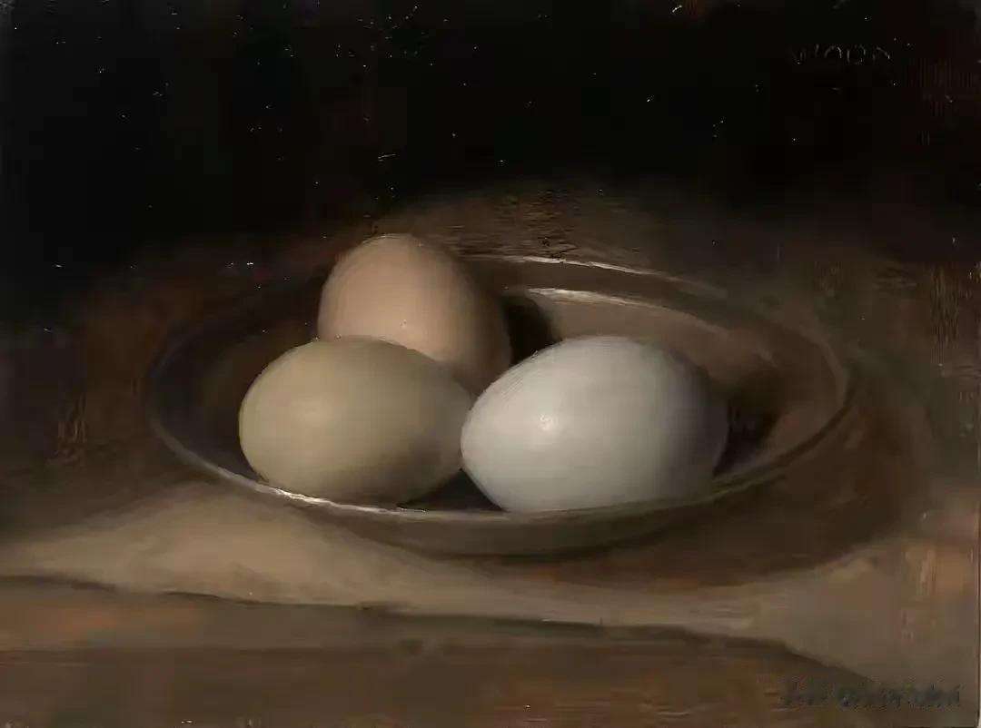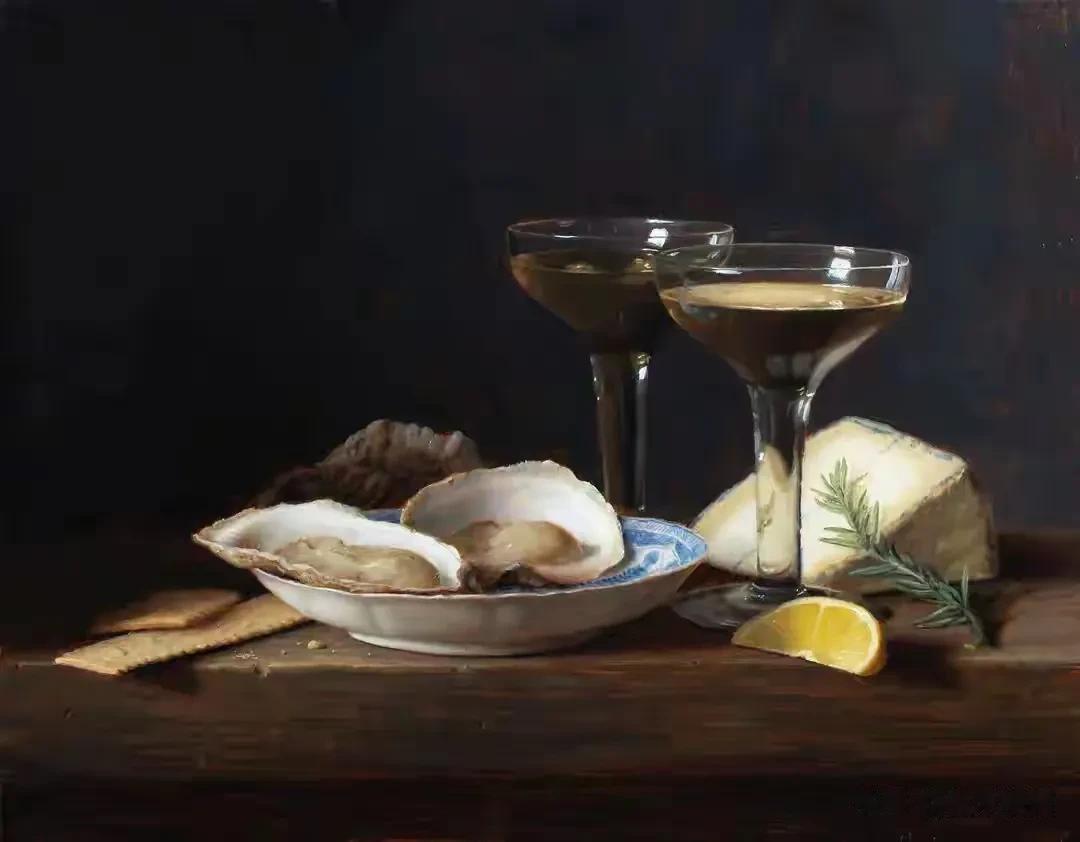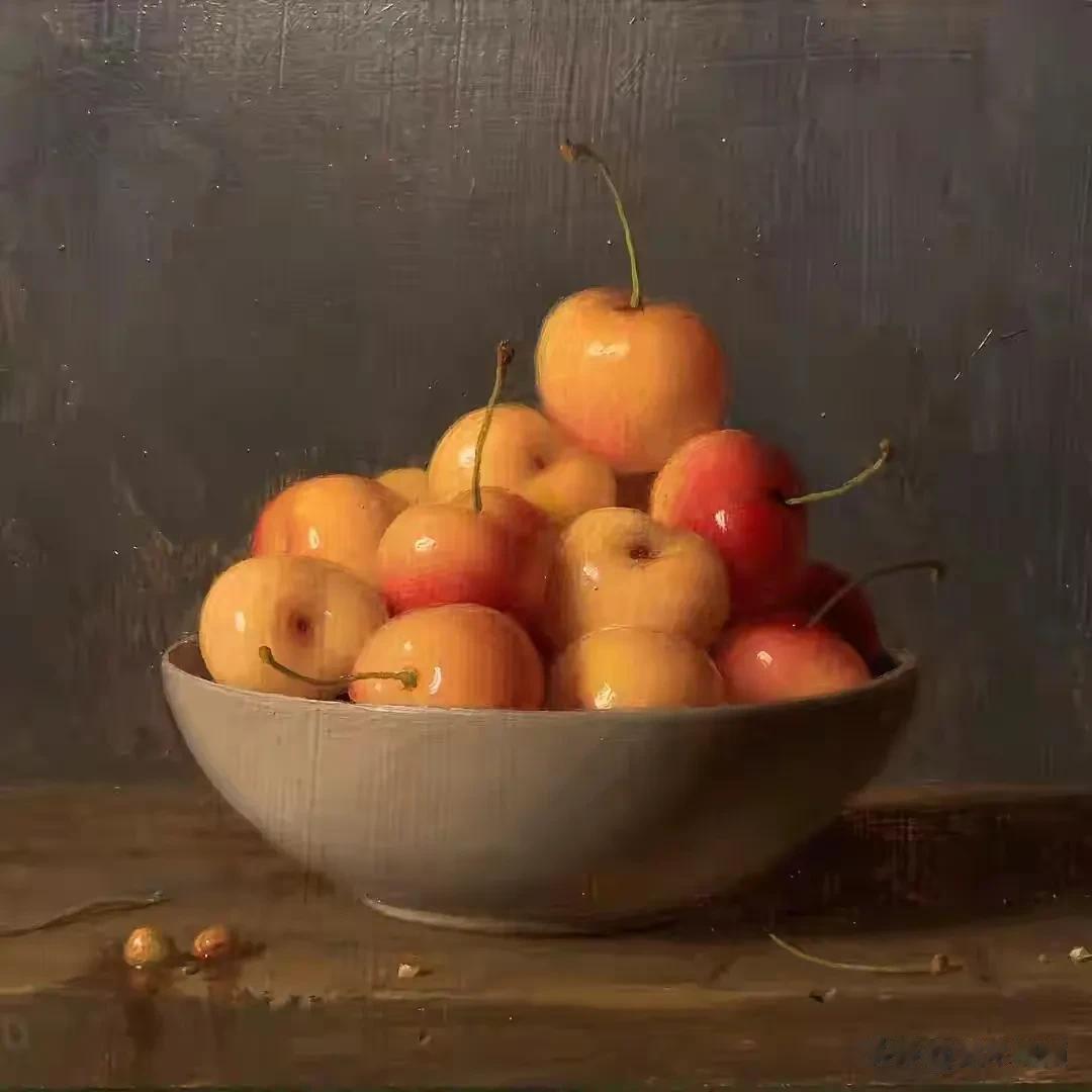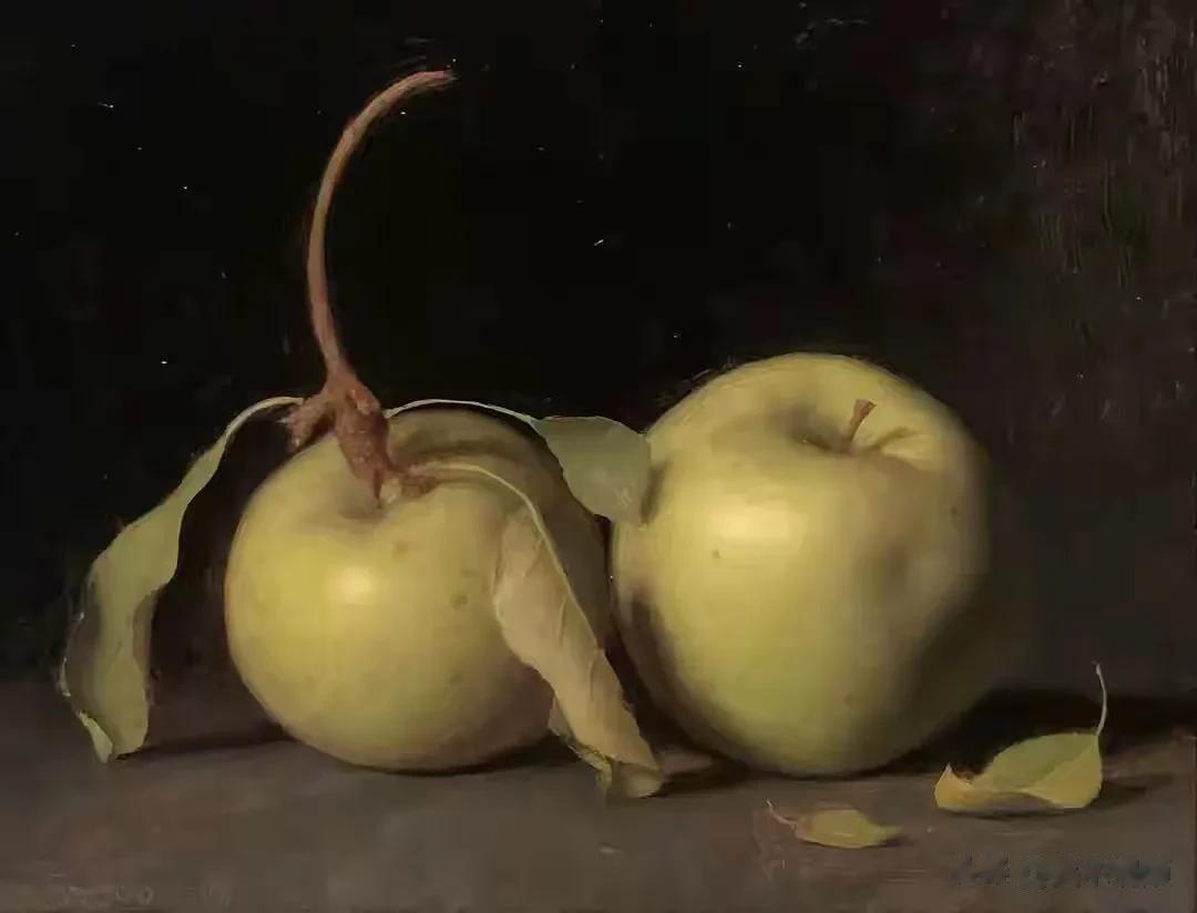 他的作品里,卡拉瓦乔的戏剧张力与伦勃朗的光影深邃交织共生,明暗交错间,水果凝着晨露的剔透,器皿泛着岁月的温润,每一件静物都在光的轻抚下苏醒。
