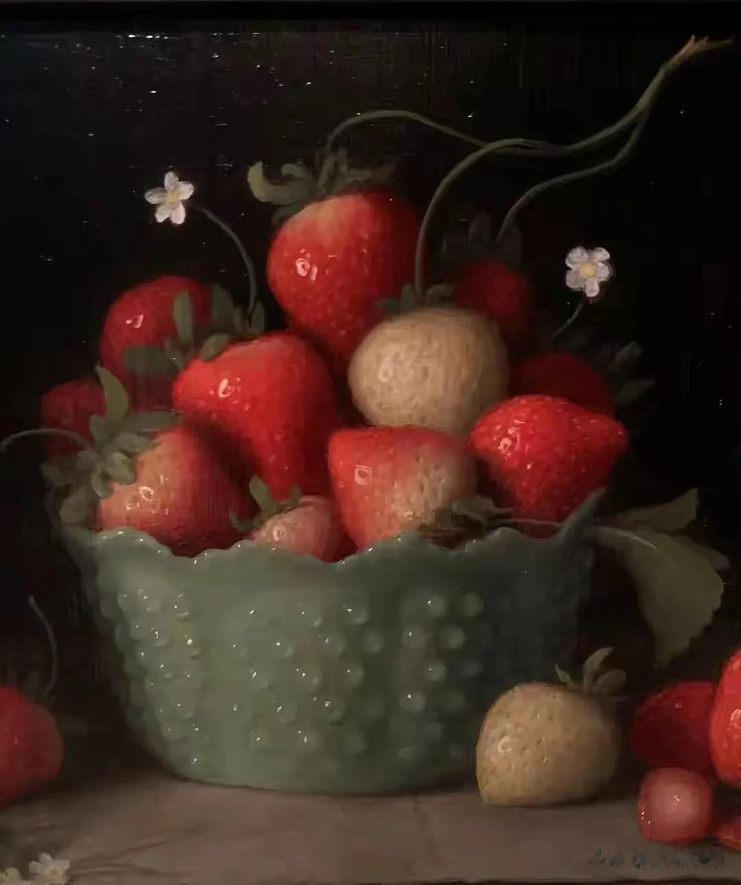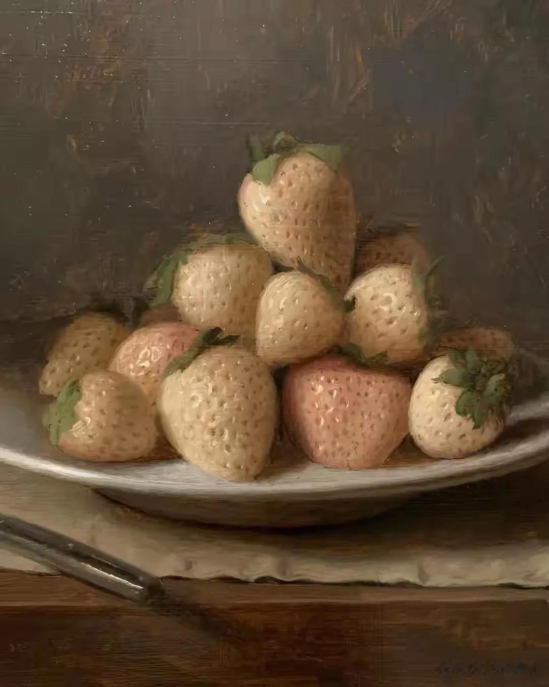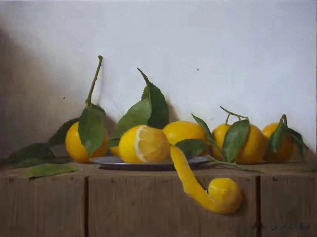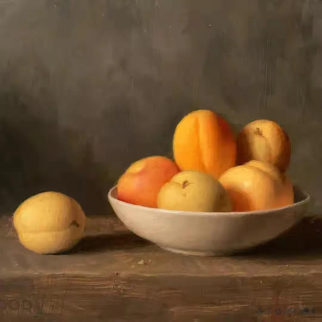 他的作品里,卡拉瓦乔的戏剧张力与伦勃朗的光影深邃交织共生,明暗交错间,水果凝着晨露的剔透,器皿泛着岁月的温润,每一件静物都在光的轻抚下苏醒。