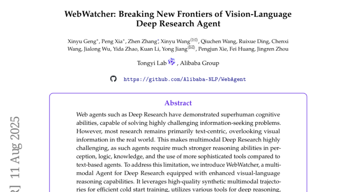这项由阿里巴巴通义实验室的耿鑫宇、夏鹏、张振等研究人员领导的研究发表于2025年8月,完整论文可通过GitHub项目页面https://github.com/Alibaba-NLP/WebAgent获取。研究团队开发了一个名为WebWatcher的AI系统,它能同时理解图片和文字,并像经验丰富的研究员一样在网络上查找信息、分析数据、得出结论。