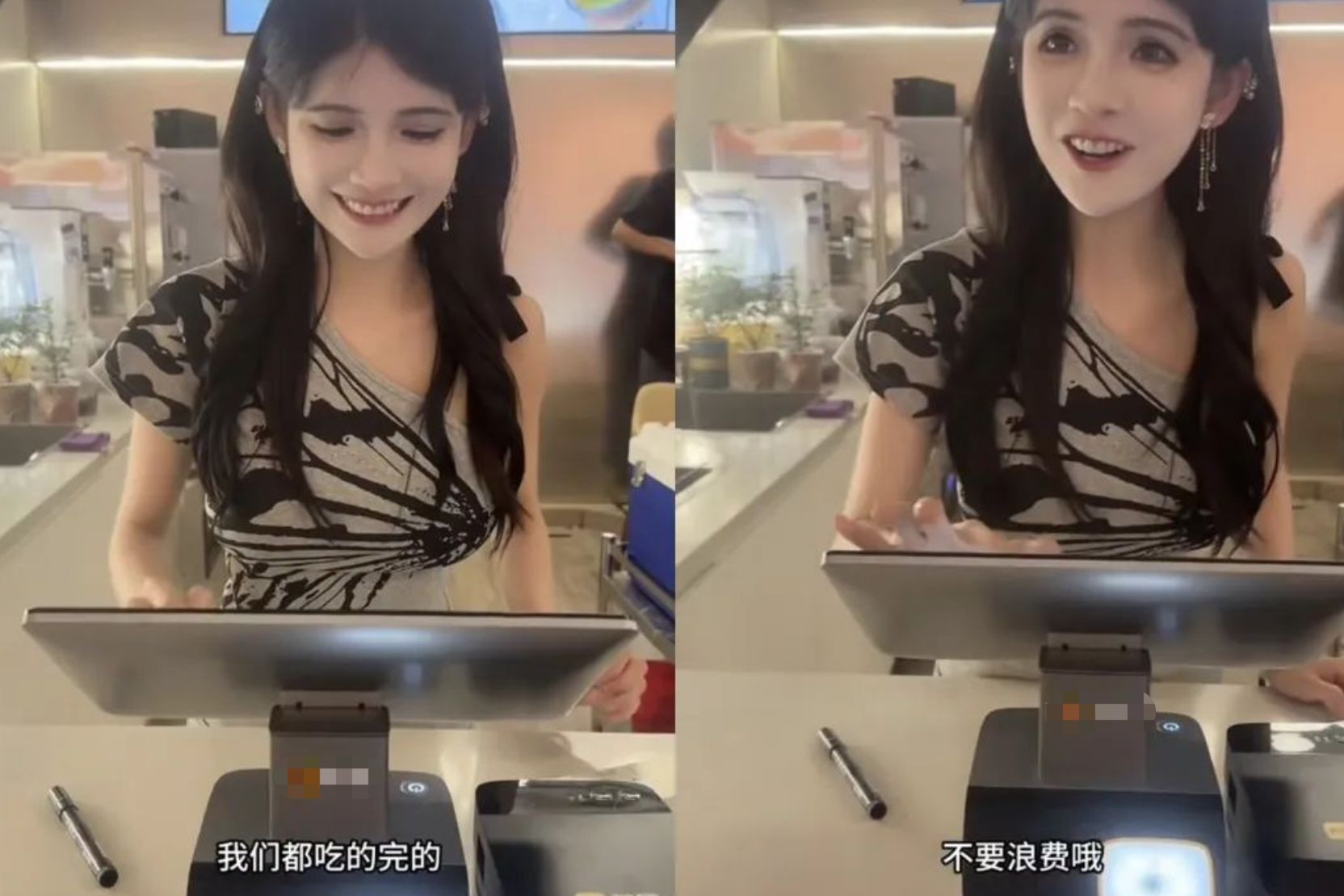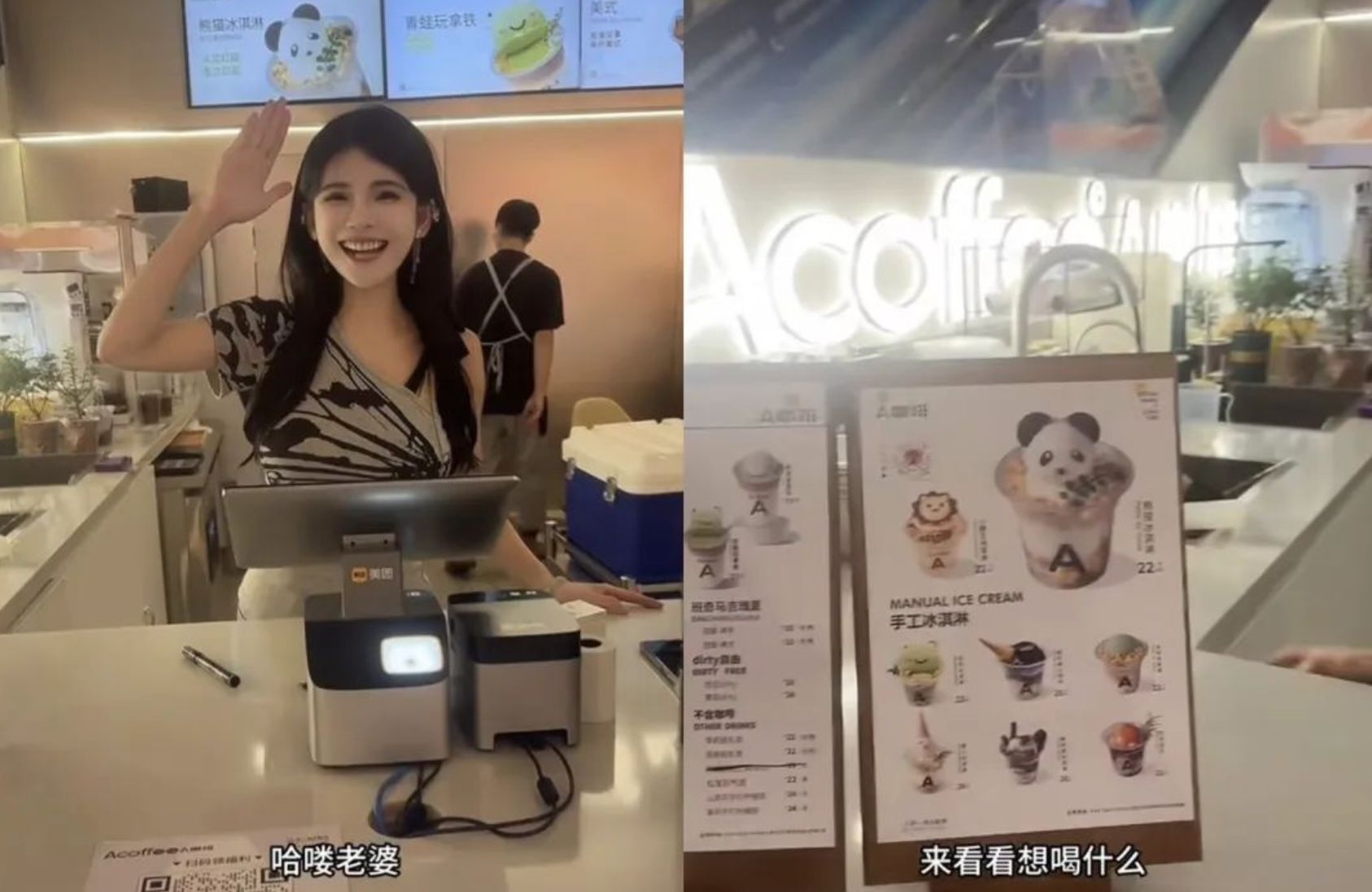 这次咖啡店生意没有煎饼摊火,但狗头萝莉工作起来还是很认真的,在现场狗头萝莉身穿黑灰色水墨风格的短裙,完美的展现了好身材,当然也有不少网友表示,这“工服”尺码小了,因为看上去实在是太紧身了,不过这也不影响狗头萝莉的专业能力,虽然现场的咖啡不是亲手制作,但却负责起了咖啡店的收银任务,并且每次只要有路人经过,都会卖力的去招揽顾客,还给客人一一介绍咖啡店里的饮品,瞬间就吸引了很多客人。
